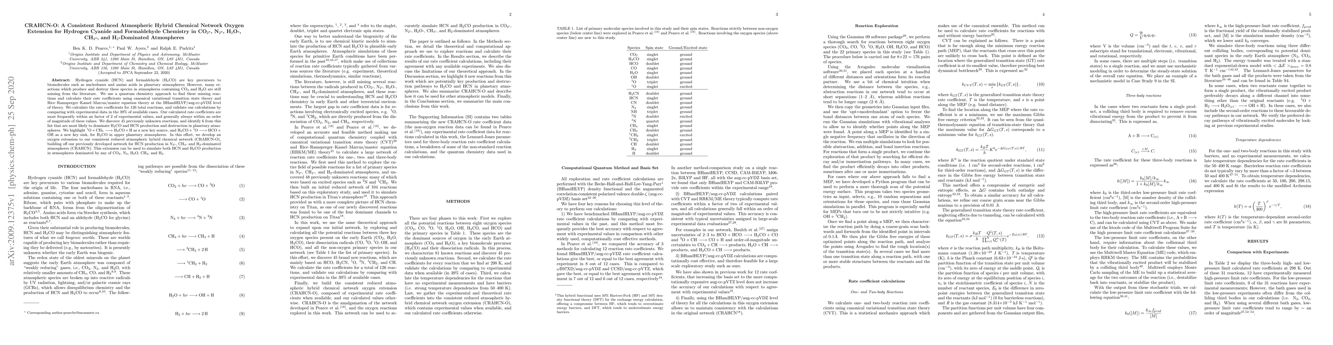 This paper introduces an oxygen-extended version of a reduced atmospheric hybrid chemical network (CRAHCN-O) to model hydrogen cyanide (HCN) and formaldehyde (H2CO) chemistry in various planetary atmospheres. The authors identify 45 previously unknown reactions and validate their rate coefficients, finding them generally within an order of magnitude of experimental data.