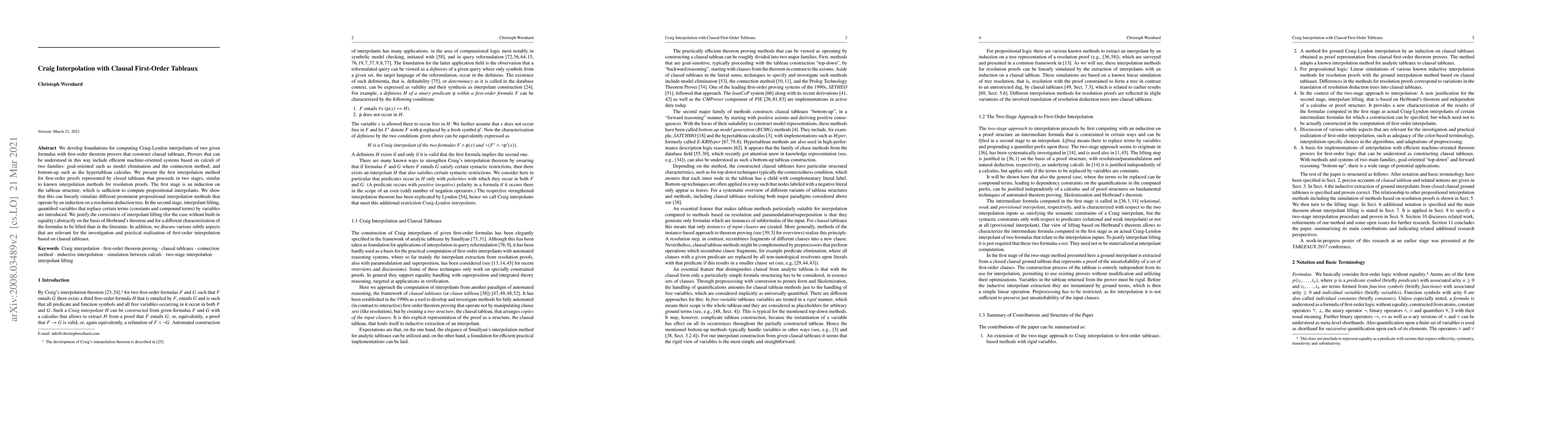 The paper introduces a two-stage method for computing Craig-Lyndon interpolants from first-order tableaux, combining propositional interpolation techniques with a novel lifting procedure for quantified variables.
