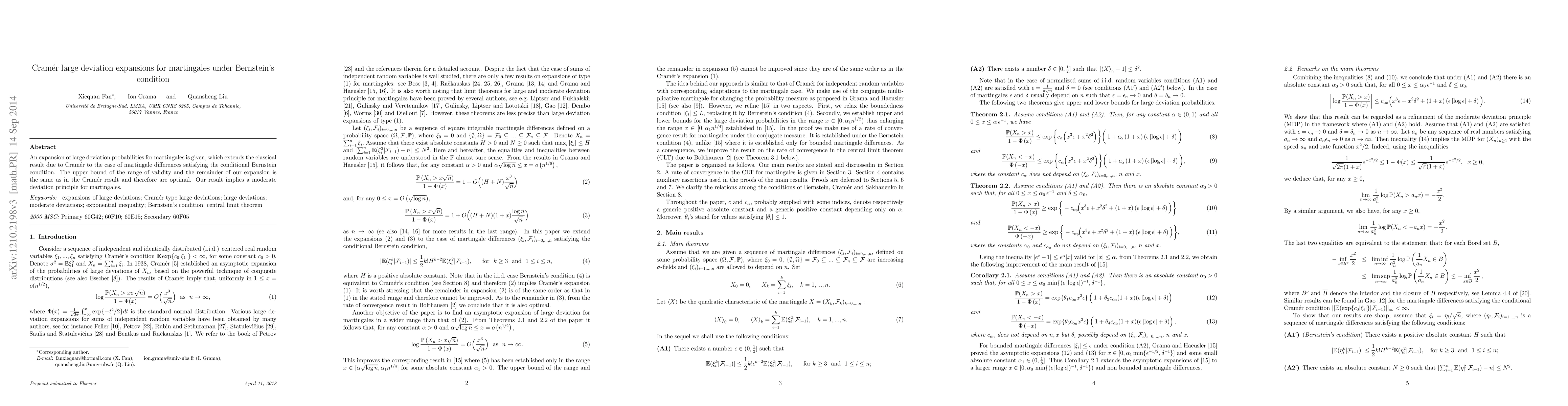 This paper derives Cramér large deviation expansions for martingales where the differences satisfy Bernstein's conditional condition, using Cramér's conjugate distribution technique. The obtained expansions match the optimal order of classical Cramér's large deviation results.