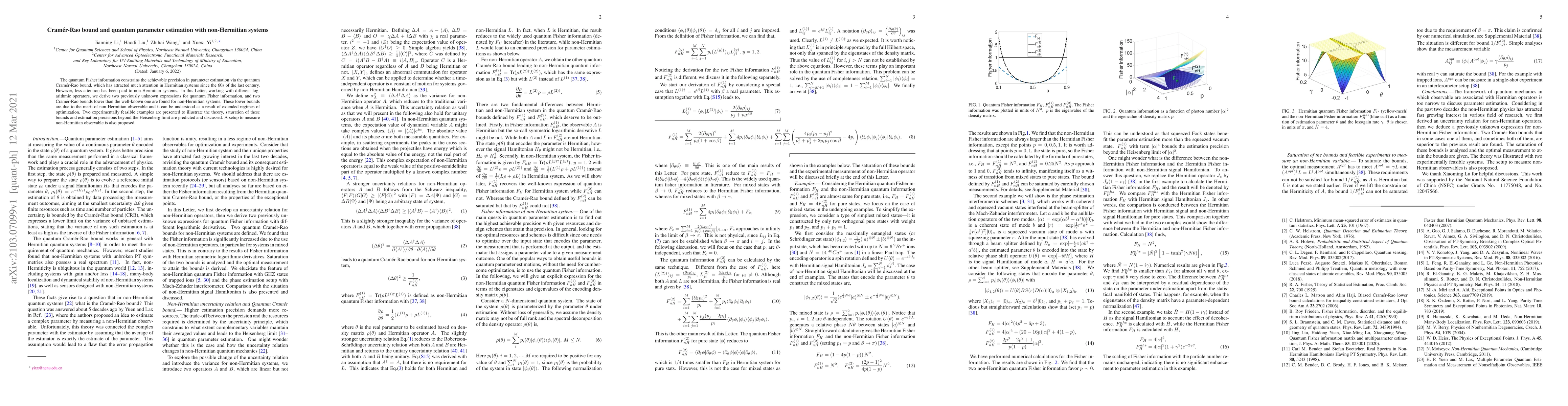 This paper derives two new expressions for quantum Fisher information and corresponding Cramér-Rao bounds for non-Hermitian systems, revealing lower bounds that surpass the traditional limits. Experimentally feasible examples demonstrate the potential for precision estimation beyond the Heisenberg limit.