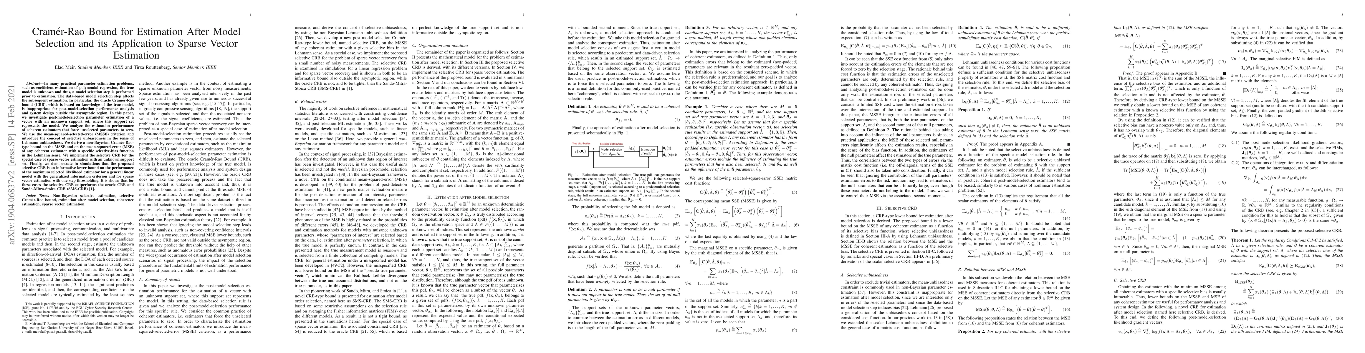 This paper investigates post-model-selection parameter estimation for vectors with unknown support sets, introducing a non-Bayesian Cramér-Rao-type bound for mean-squared-selected-error. It demonstrates that the proposed selective CRB outperforms the oracle and SMS-CRB in simulations for sparse vector estimation.