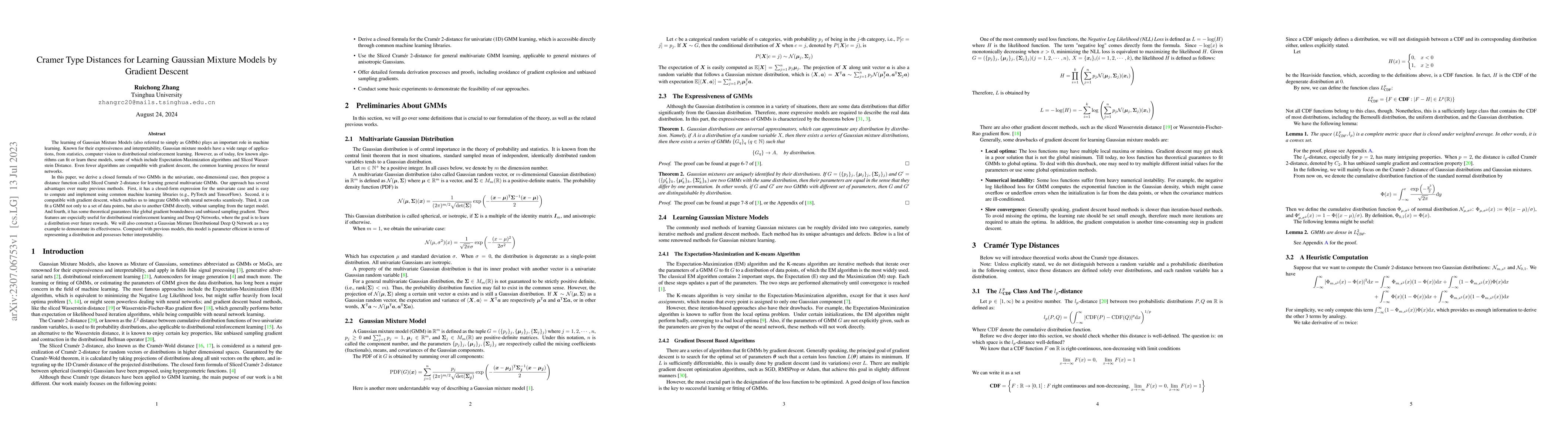 This paper proposes a Sliced Cramér 2-distance for learning Gaussian Mixture Models (GMMs) via gradient descent, offering a closed-form expression for univariate GMMs and compatibility with neural networks. It demonstrates advantages over previous methods, including global gradient boundedness and unbiased sampling gradient, making it particularly useful for distributional reinforcement learning.