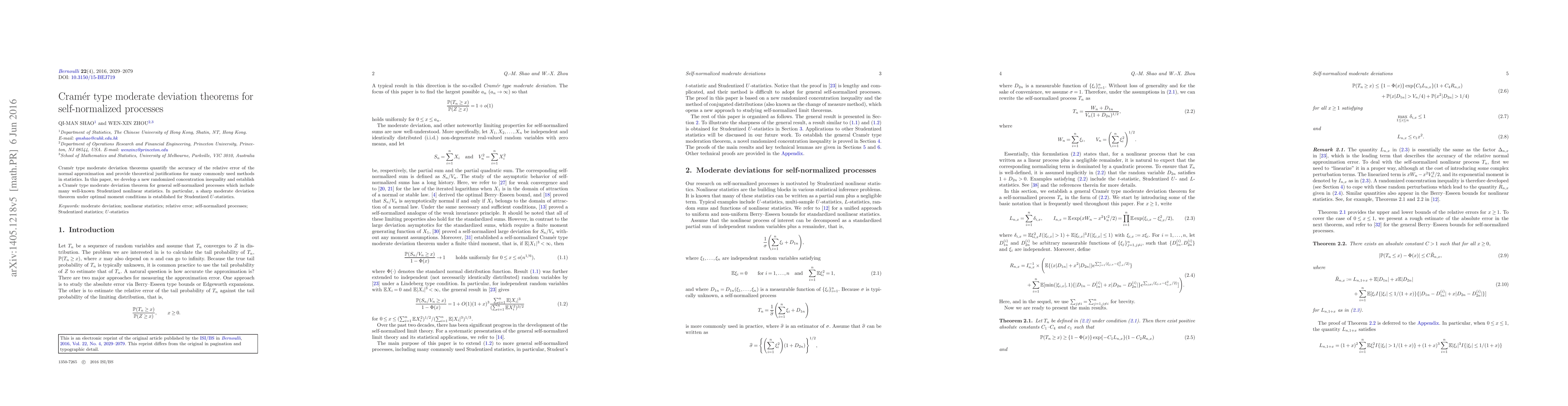 This paper develops a new randomized concentration inequality to establish Cramçer type moderate deviation theorems for self-normalized processes, including Studentized $U$-statistics, providing theoretical justifications for statistical methods.