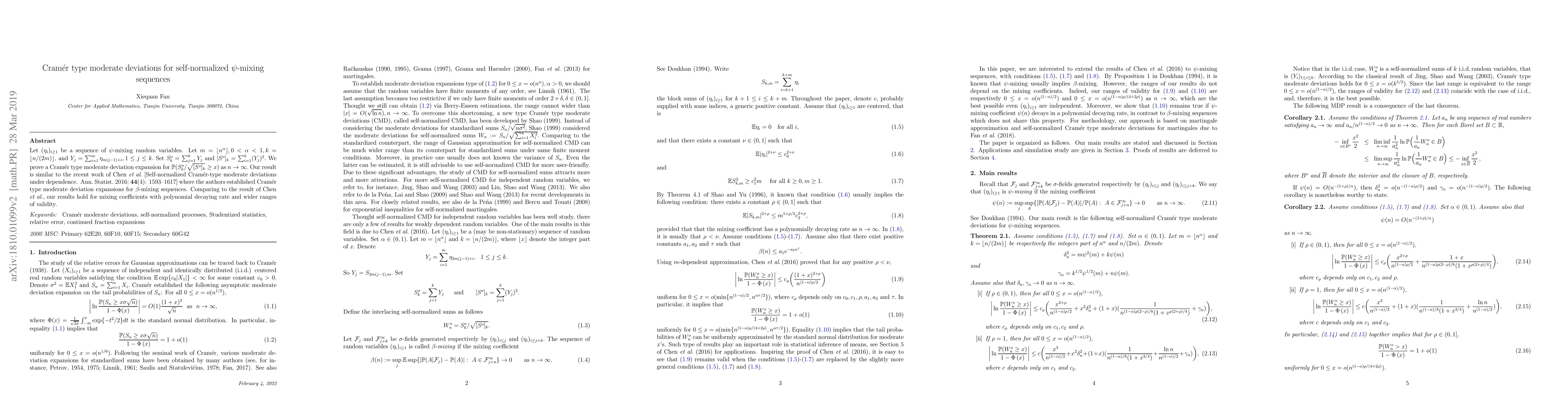 Let $(\eta_i)_{i\geq1}$ be a sequence of $\psi$-mixing random variables. Let $m=\lfloor n^\alpha \rfloor, 0< \alpha < 1, k=\lfloor n/(2m) \rfloor,$ and $Y_j = \sum_{i=1}^m \eta_{m(j-1)+i}, 1\leq j \leq k.$ Set $ S_k^o=\sum_{j=1}^{k } Y_j $ and $[S^o]_k=\sum_{i=1}^{k } (Y_j )^2.$ We prove a Cram\'er type moderate deviation expansion for $\mathbb{P}(S_k^o/\sqrt{[ S^o]_k} \geq x)$ as $n\to \infty.$ Our result is similar to the recent work of Chen\textit{ et al.}\ [Self-normalized Cram\'{e}r-type moderate deviations under dependence. Ann.\ Statist.\ 2016; \textbf{44}(4): 1593--1617] where the authors established Cram\'er type moderate deviation expansions for $\beta$-mixing sequences. Comparing to the result of Chen \textit{et al.}, our results hold for mixing coefficients with polynomial decaying rate and wider ranges of validity.