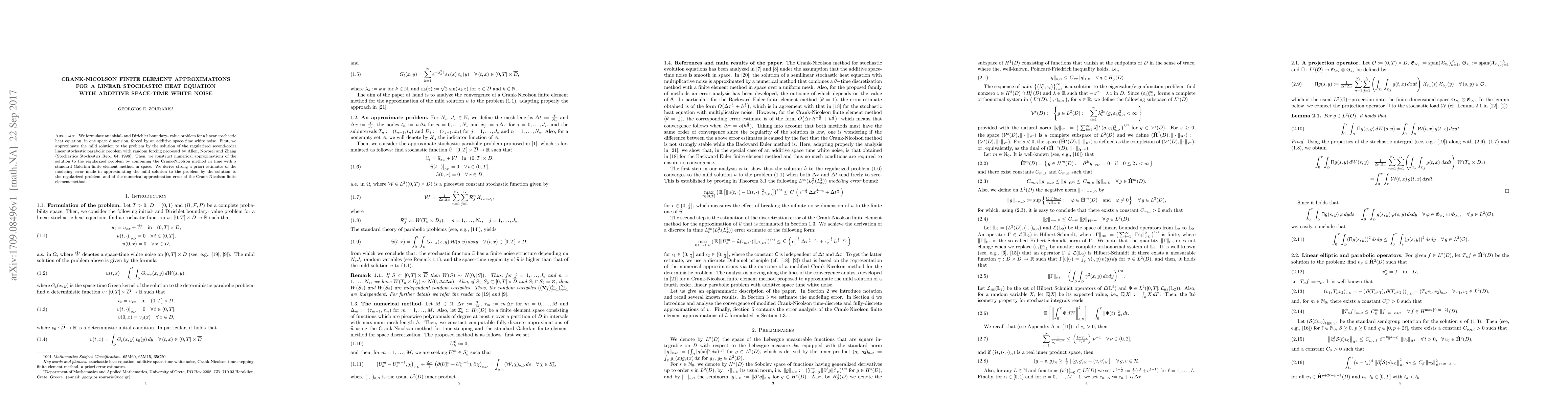 This paper develops Crank-Nicolson finite element approximations for a linear stochastic heat equation driven by additive space-time white noise. It combines the Crank-Nicolson method with a Galerkin finite element method to numerically solve the problem and provides strong a priori estimates for both modeling and numerical approximation errors.