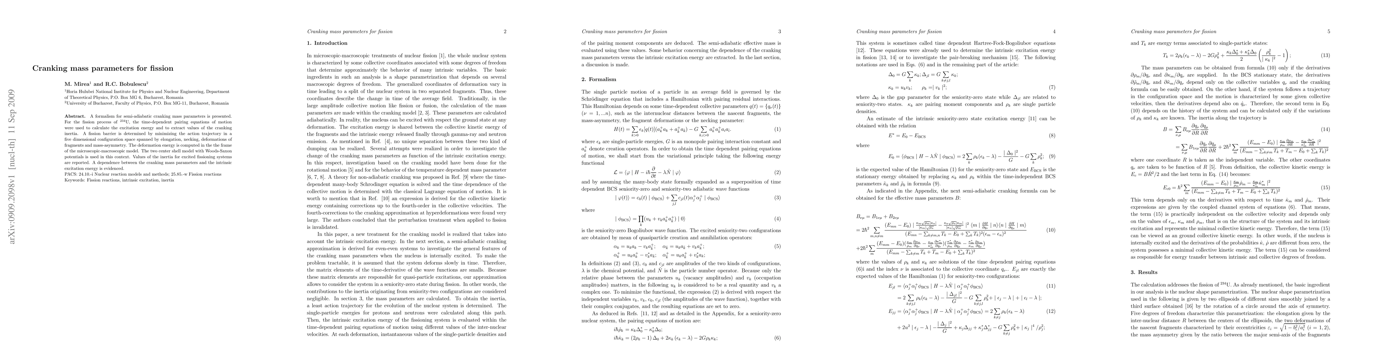 Researchers developed a framework to calculate cranking mass parameters for fission, revealing a dependence between these parameters and the intrinsic excitation energy of the system.
