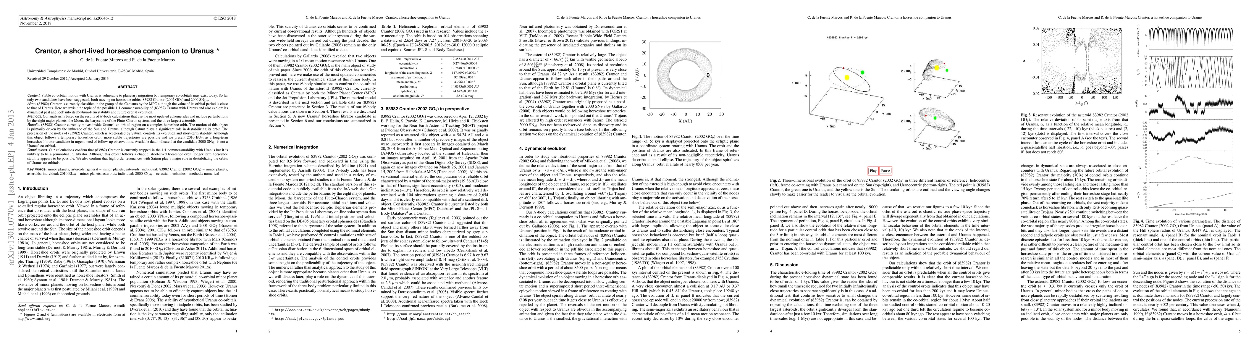 Stable co-orbital motion with Uranus is vulnerable to planetary migration but temporary co-orbitals may exist today. So far only two candidates have been suggested, both moving on horseshoe orbits: 83982 Crantor (2002 GO9) and 2000 SN331. (83982) Crantor is currently classified in the group of the Centaurs by the MPC although the value of its orbital period is close to that of Uranus. Here we revisit the topic of the possible 1:1 commensurability of (83982) Crantor with Uranus and also explore its dynamical past and look into its medium-term stability and future orbital evolution. (83982) Crantor currently moves inside Uranus' co-orbital region on a complex horseshoe orbit. The motion of this object is primarily driven by the influence of the Sun and Uranus, although Saturn plays a significant role in destabilizing its orbit. The precession of the nodes of (83982) Crantor, which is accelerated by Saturn, controls its evolution and short-term stability. Although this object follows a temporary horseshoe orbit, more stable trajectories are possible and we present 2010 EU65 as a long-term horseshoe librator candidate in urgent need of follow-up observations. Available data indicate that the candidate 2000 SN331 is not a Uranus' co-orbital.
