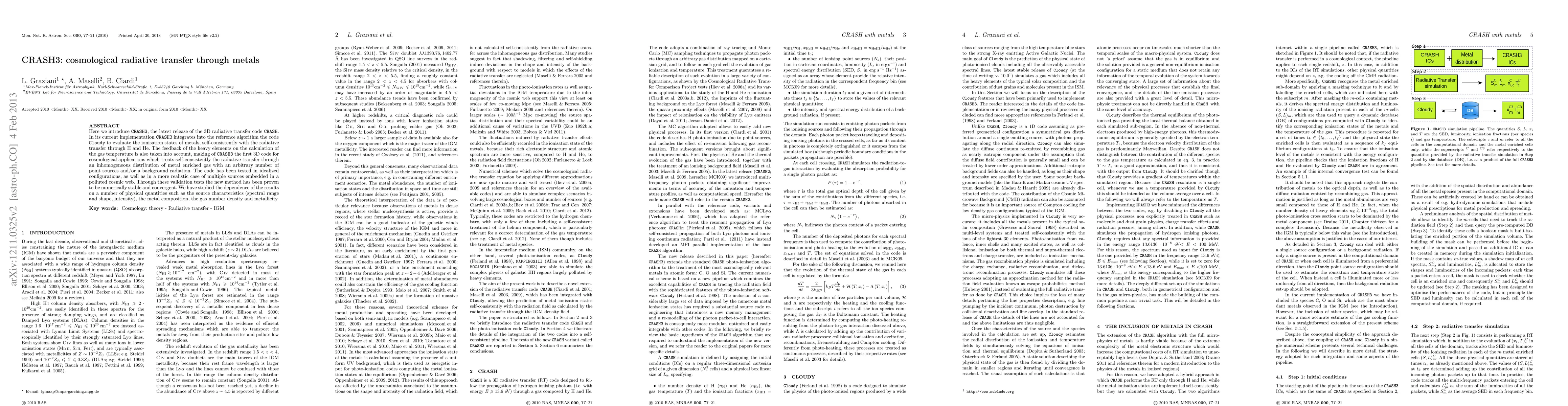 Here we introduce CRASH3, the latest release of the 3D radiative transfer code CRASH. In its current implementation CRASH3 integrates into the reference algorithm the code Cloudy to evaluate the ionisation states of metals, self-consistently with the radiative transfer through H and He. The feedback of the heavy elements on the calculation of the gas temperature is also taken into account, making of CRASH3 the first 3D code for cosmological applications which treats self-consistently the radiative transfer through an inhomogeneous distribution of metal enriched gas with an arbitrary number of point sources and/or a background radiation. The code has been tested in idealized configurations, as well as in a more realistic case of multiple sources embedded in a polluted cosmic web. Through these validation tests the new method has been proven to be numerically stable and convergent. We have studied the dependence of the results on a number of physical quantities such as the source characteristics (spectral range and shape, intensity), the metal composition, the gas number density and metallicity.