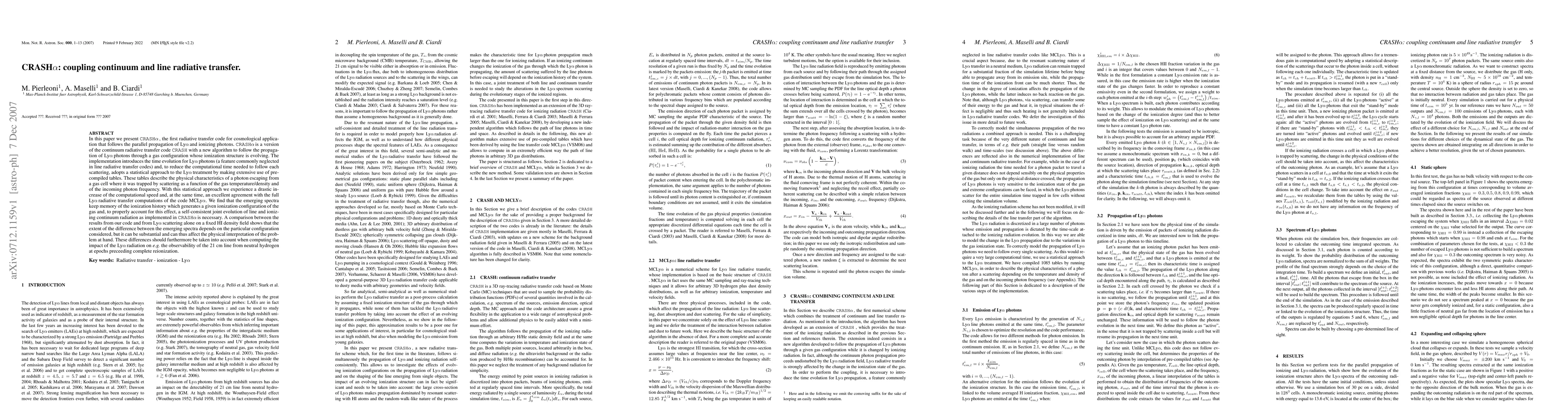 The paper introduces CRASH_alpha, a radiative transfer code that simultaneously tracks Ly_alpha and ionizing photons in cosmological simulations. It uses a statistical approach with pre-compiled tables to speed up computations, while maintaining accuracy. The code reveals that Ly_alpha spectra retain information about the ionization history, emphasizing the need for a joint evolution model of line and continuum radiation. This has implications for interpreting observations, particularly the 21 cm line from neutral hydrogen before reionization.