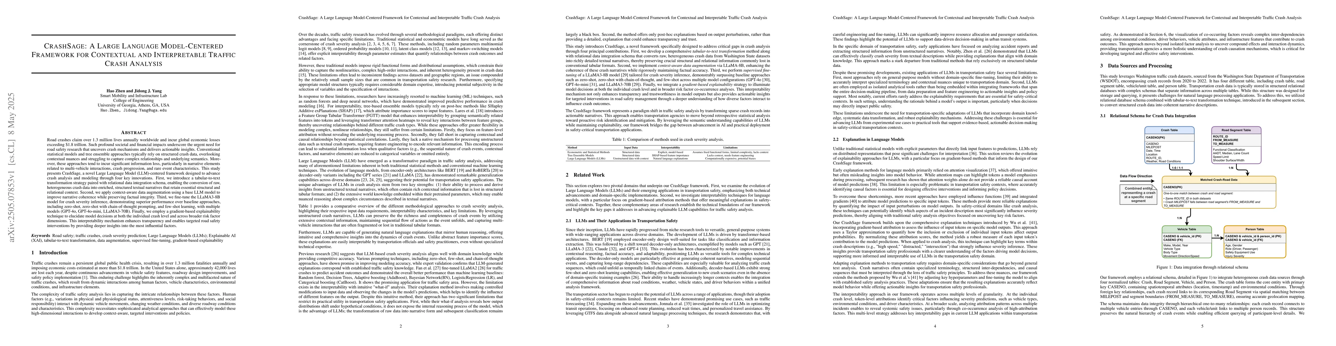 A new framework called CrashSage uses large language models to analyze traffic crashes, improving contextual understanding and interpretability of crash data. It offers enhanced insights into crash severity and underlying factors, enabling more effective road safety interventions.