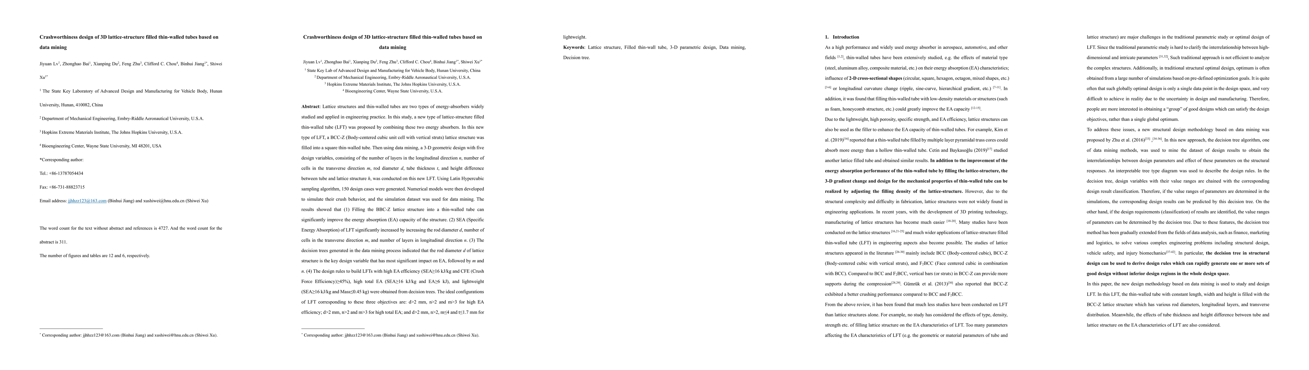 Researchers designed a new lattice-structure filled thin-walled tube to improve energy absorption, using data mining to identify key design variables that maximize efficiency and minimize weight.