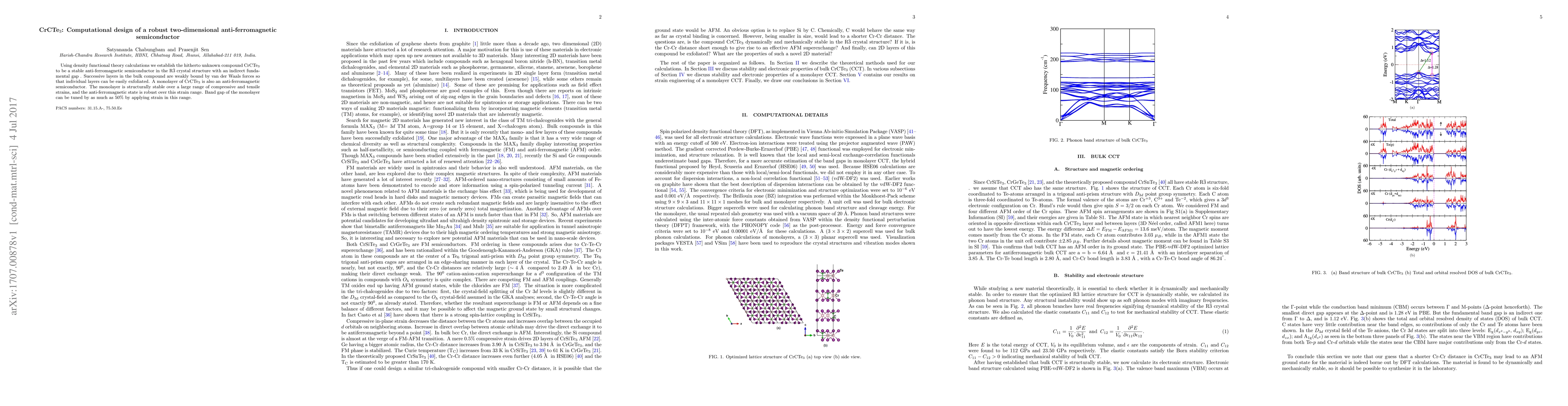This study identifies CrCTe$_3$ as a stable two-dimensional anti-ferromagnetic semiconductor with an indirect band gap, suitable for exfoliation into monolayers. The monolayer maintains structural and magnetic stability under strain, allowing for up to 50% tuning of its band gap.
