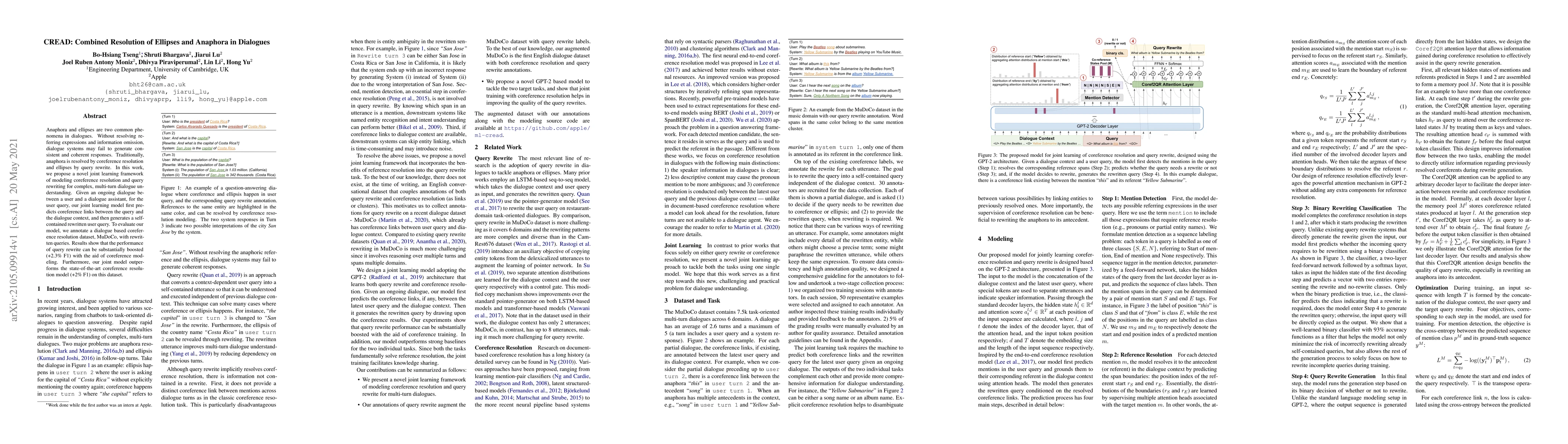 This paper proposes a joint learning framework to concurrently resolve coreferences and rewrite ellipses in multi-turn dialogues, improving both tasks' performance. The model significantly boosts query rewrite results (+2.3% F1) and outperforms existing coreference resolution models (+2% F1) on a new annotated dataset, MuDoCo.