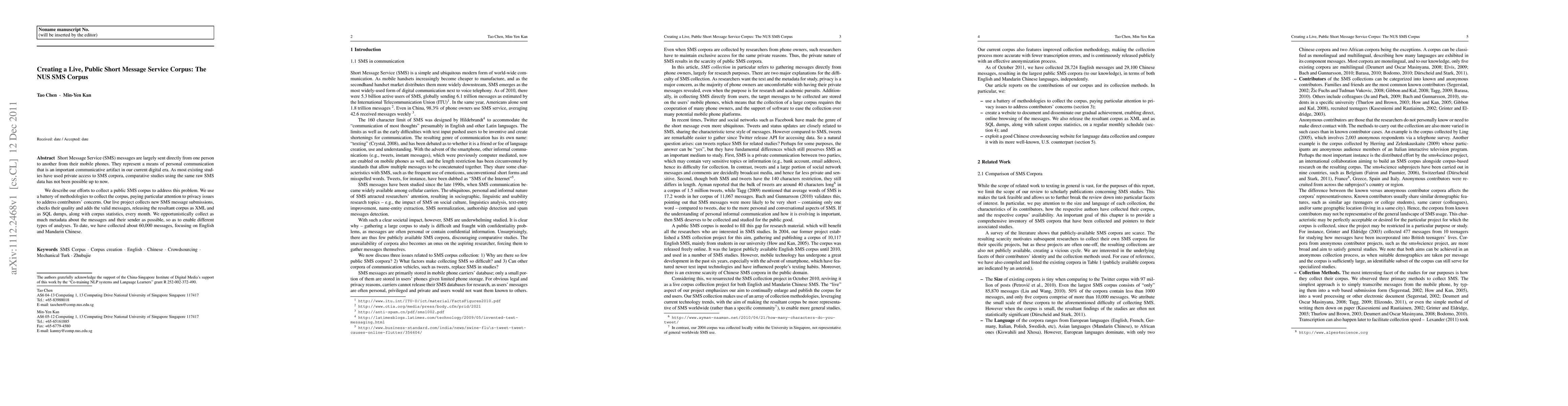 Short Message Service (SMS) messages are largely sent directly from one person to another from their mobile phones. They represent a means of personal communication that is an important communicative artifact in our current digital era. As most existing studies have used private access to SMS corpora, comparative studies using the same raw SMS data has not been possible up to now. We describe our efforts to collect a public SMS corpus to address this problem. We use a battery of methodologies to collect the corpus, paying particular attention to privacy issues to address contributors' concerns. Our live project collects new SMS message submissions, checks their quality and adds the valid messages, releasing the resultant corpus as XML and as SQL dumps, along with corpus statistics, every month. We opportunistically collect as much metadata about the messages and their sender as possible, so as to enable different types of analyses. To date, we have collected about 60,000 messages, focusing on English and Mandarin Chinese.