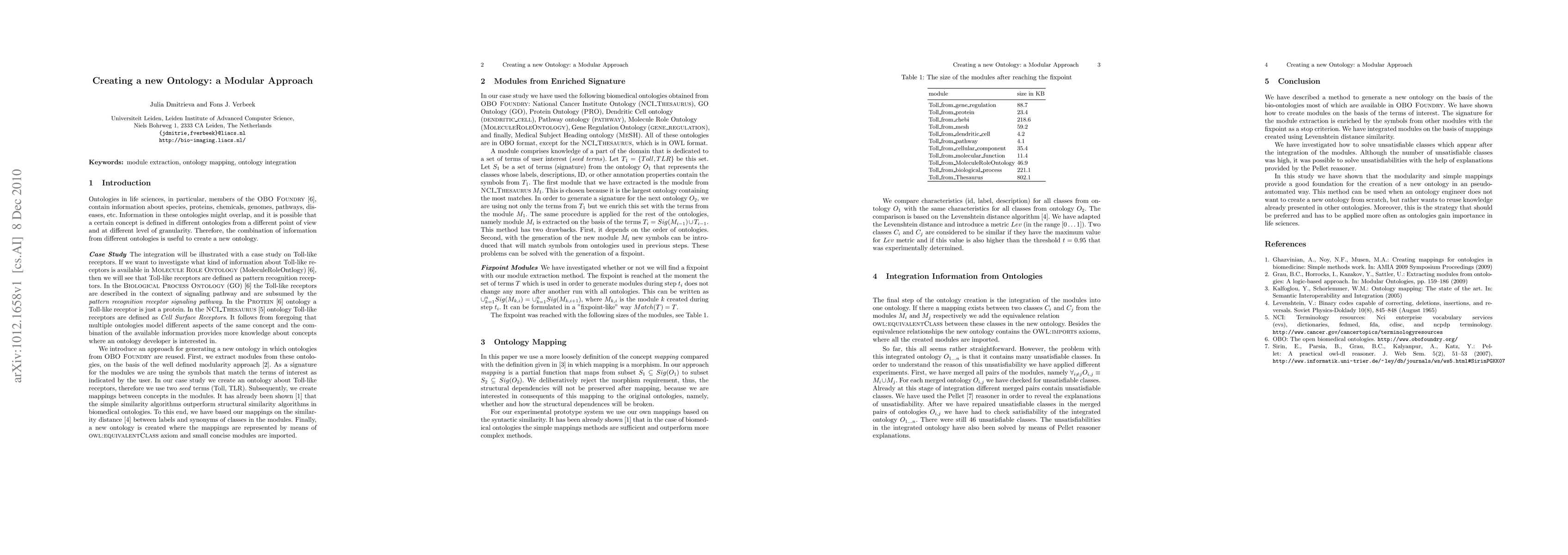 This paper proposes a modular approach for constructing new ontologies, emphasizing flexibility and scalability. It outlines a systematic method for building and integrating ontology modules, facilitating easier updates and maintenance.