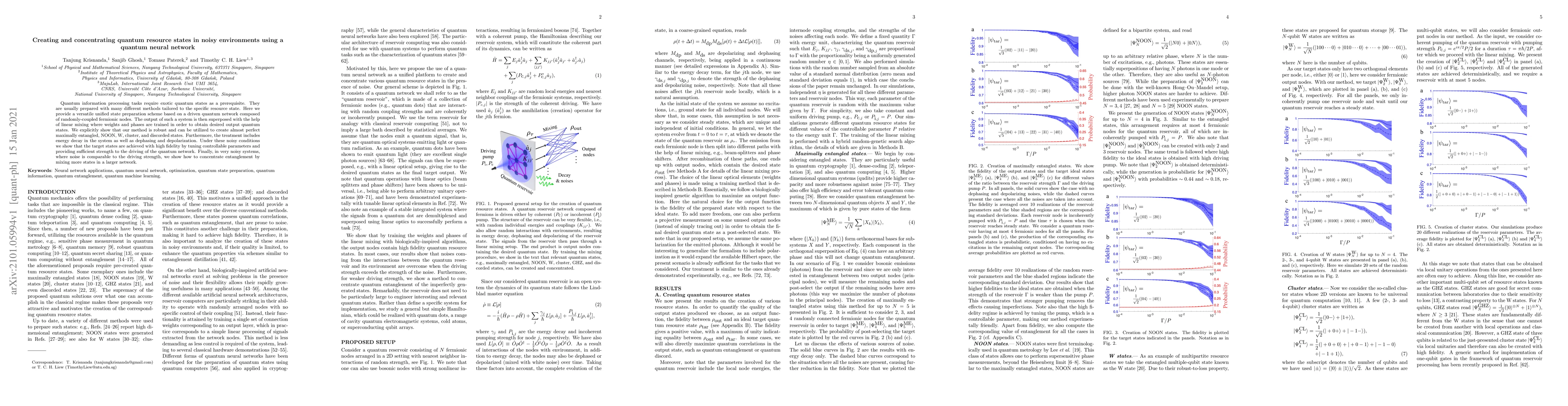 Quantum information processing tasks require exotic quantum states as a prerequisite. They are usually prepared with many different methods tailored to the specific resource state. Here we provide a versatile unified state preparation scheme based on a driven quantum network composed of randomly-coupled fermionic nodes. The output of such a system is then superposed with the help of linear mixing where weights and phases are trained in order to obtain desired output quantum states. We explicitly show that our method is robust and can be utilized to create almost perfect maximally entangled, NOON, W, cluster, and discorded states. Furthermore, the treatment includes energy decay in the system as well as dephasing and depolarization. Under these noisy conditions we show that the target states are achieved with high fidelity by tuning controllable parameters and providing sufficient strength to the driving of the quantum network. Finally, in very noisy systems, where noise is comparable to the driving strength, we show how to concentrate entanglement by mixing more states in a larger network.
