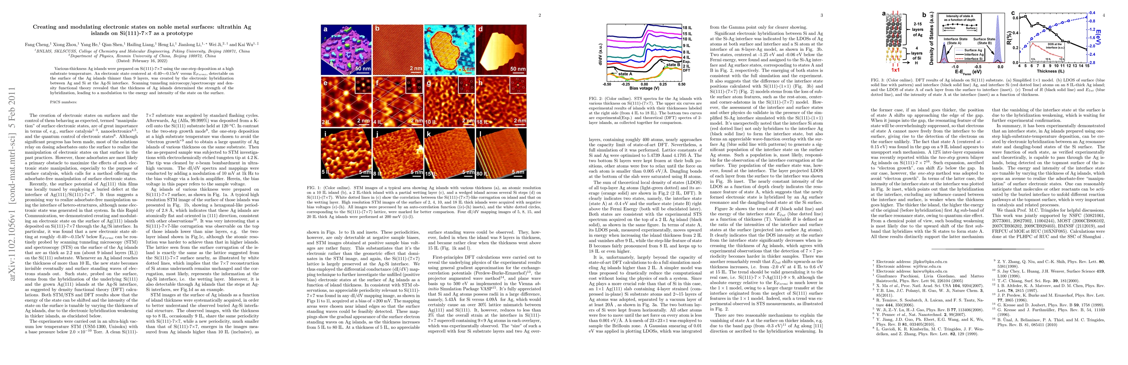 This paper investigates ultrathin Ag islands on Si(111)-7×7, revealing an electronic state created by Ag-Si hybridization at the interface. The study shows that the electronic state's energy and intensity are modulated by the thickness of Ag islands, as determined by scanning tunneling microscopy/spectroscopy and density functional theory.