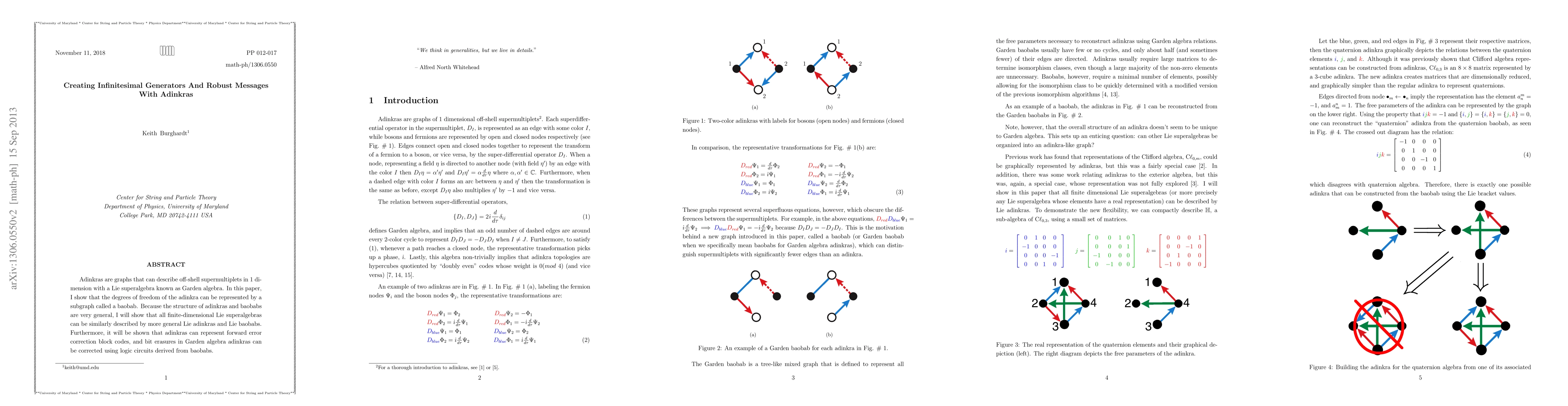This paper explores how adinkras, graphs representing off-shell supermultiplets, can describe finite-dimensional Lie superalgebras through subgraphs called baobabs. It also demonstrates that adinkras can encode forward error correction block codes, with bit erasures corrected via logic circuits derived from baobabs.
