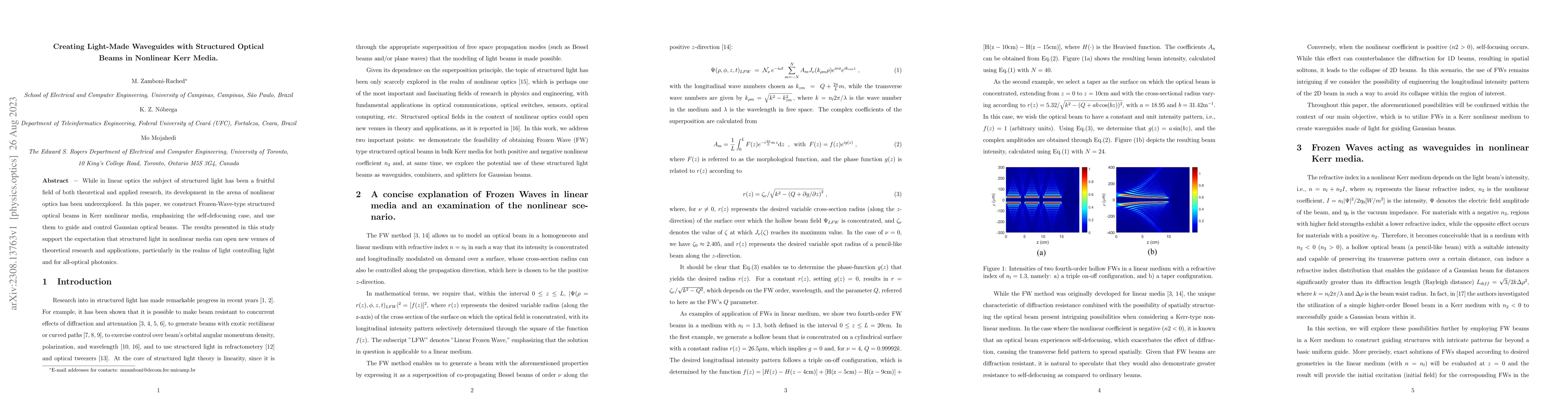This paper constructs Frozen-Wave-type structured optical beams in Kerr nonlinear media to guide and control Gaussian beams, demonstrating potential for new theoretical research and applications in all-optical photonics. The study highlights the underexplored field of structured light in nonlinear optics.