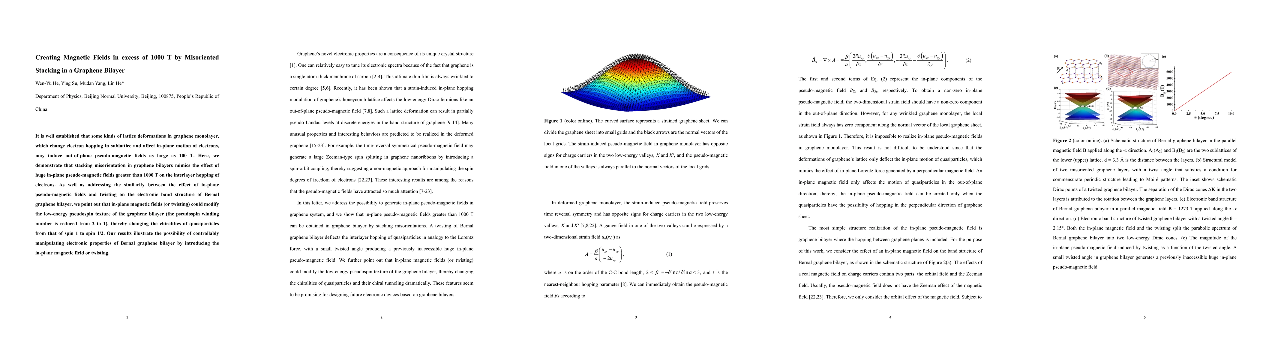 This paper demonstrates that misoriented stacking in graphene bilayers can induce pseudo-magnetic fields exceeding 1000 T, altering interlayer electron hopping and modifying the low-energy pseudospin texture. This manipulation can change quasiparticle chiralities, showcasing a method to control the electronic properties of graphene bilayers.