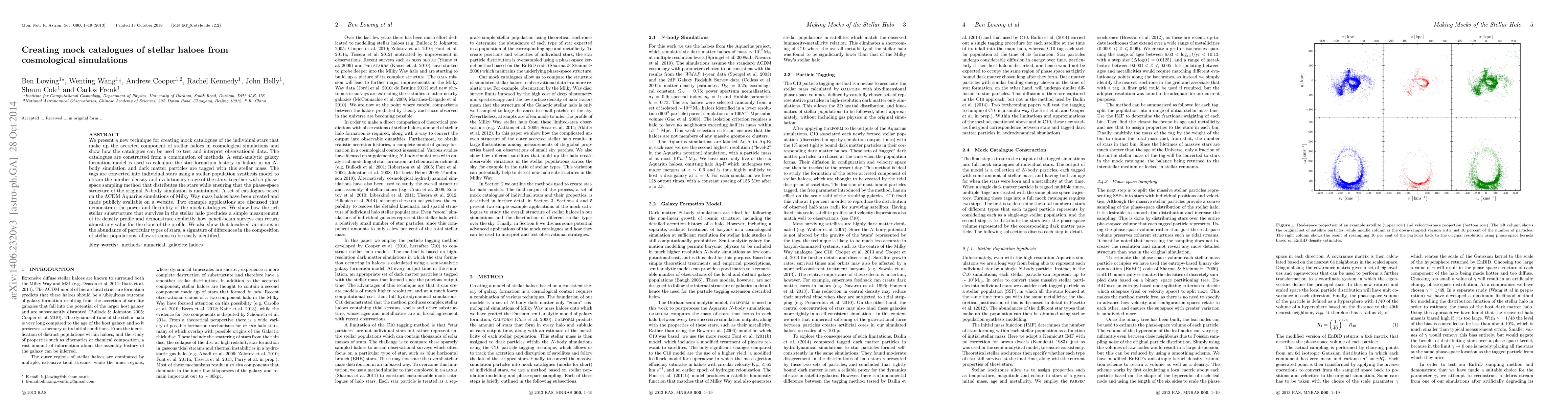 This paper introduces a new technique for generating mock catalogues of stars in the accreted component of stellar haloes from cosmological simulations, combining galaxy formation models, stellar population synthesis, and phase-space sampling. The resulting catalogues enable testing and interpreting observational data, revealing the complexity of stellar halo substructures and the impact of stellar population composition on survey results.