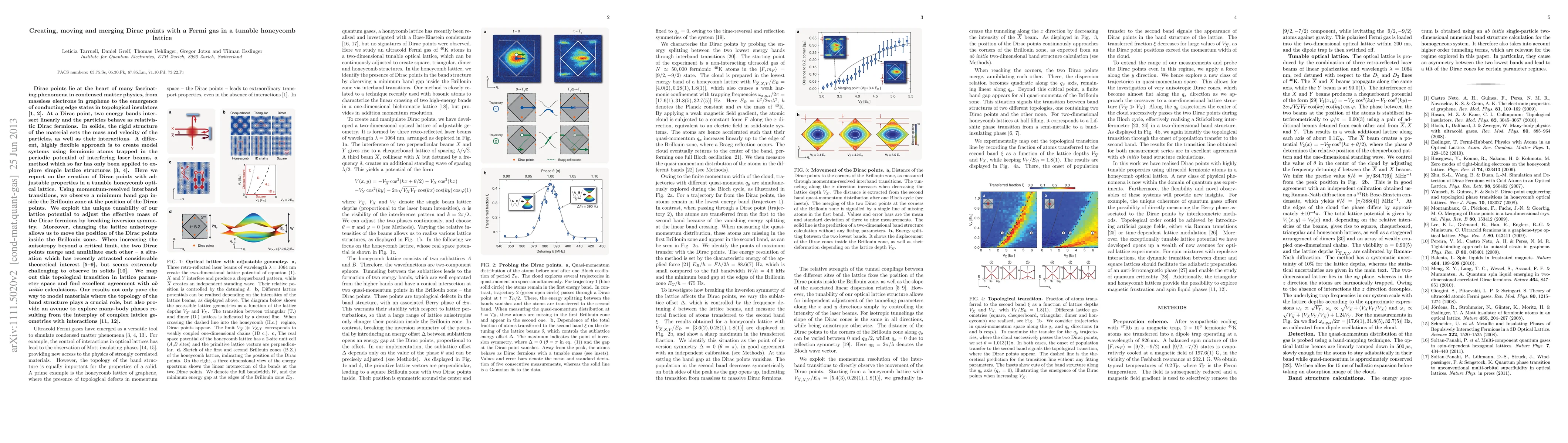 This paper reports the creation and manipulation of Dirac points in a tunable honeycomb optical lattice using fermionic atoms. The study demonstrates the ability to adjust the effective mass and position of Dirac points, and observes their merging and annihilation under increased lattice anisotropy, providing insights into topological transitions and many-body phases.