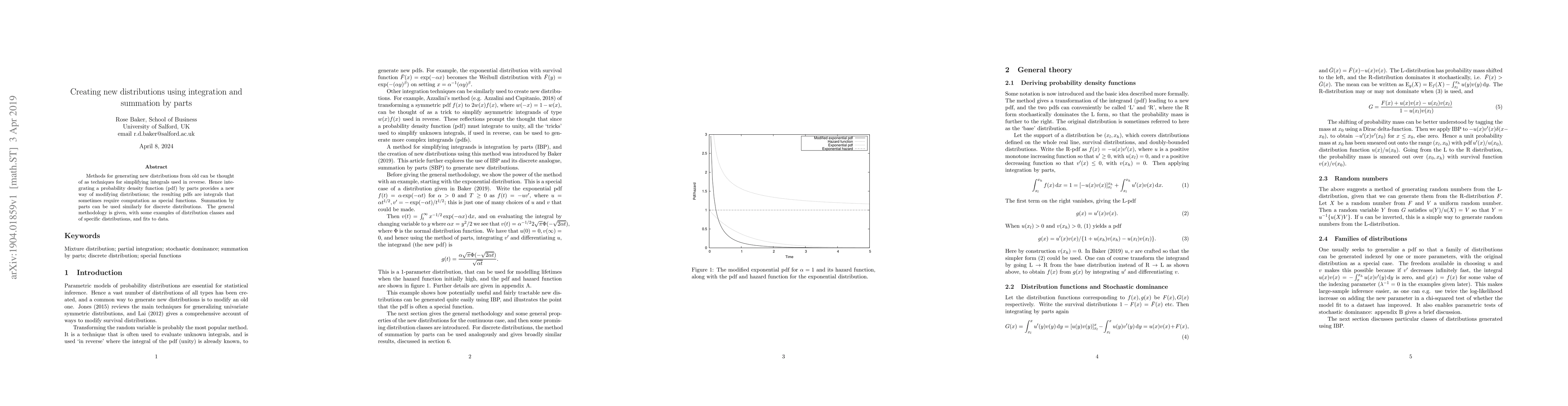 Methods for generating new distributions from old can be thought of as techniques for simplifying integrals used in reverse. Hence integrating a probability density function (pdf) by parts provides a new way of modifying distributions; the resulting pdfs are integrals that sometimes require computation as special functions. Summation by parts can be used similarly for discrete distributions. The general methodology is given, with some examples of distribution classes and of specific distributions, and fits to data.