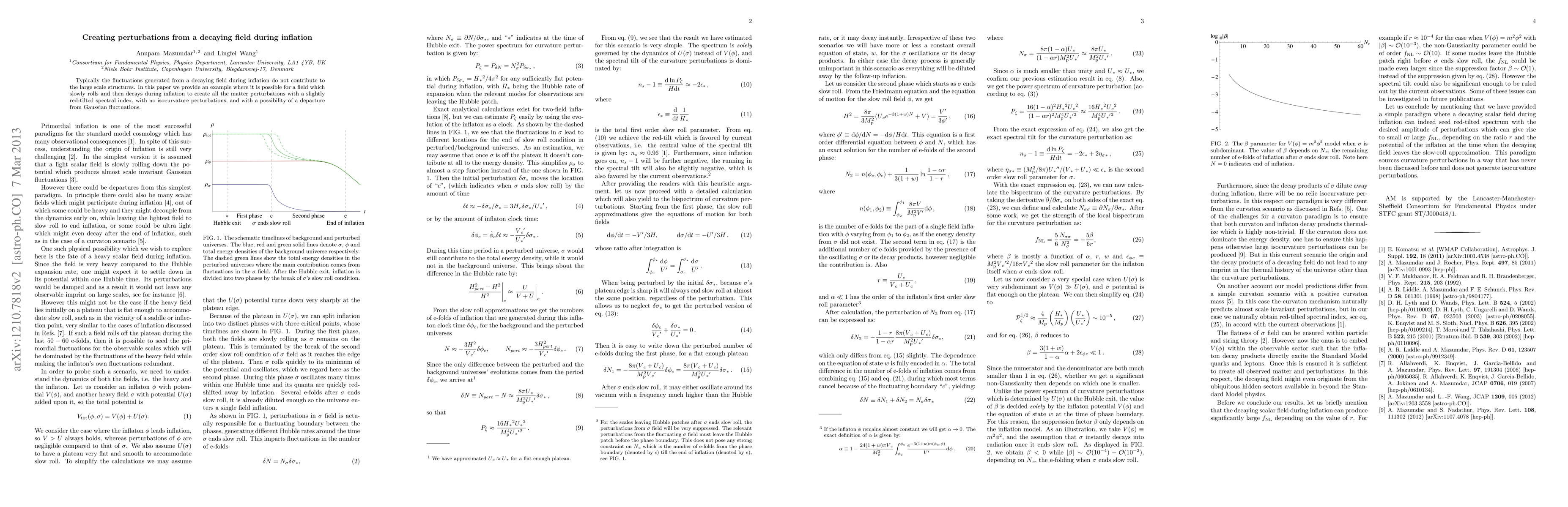 This paper explores a scenario where a decaying field during inflation generates all matter perturbations with a red-tilted spectral index, without isocurvature perturbations, and potentially non-Gaussian fluctuations, challenging the typical notion that such fields do not contribute to large scale structures.