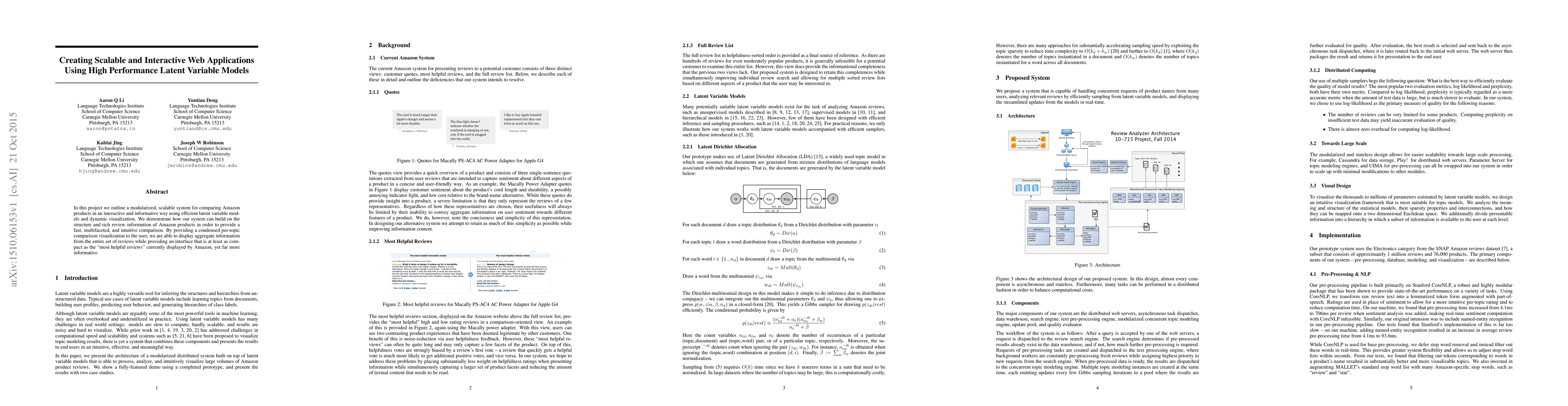 This research develops a scalable web application using high-performance latent variable models to compare Amazon products interactively. The system leverages review data for a detailed, yet compact, visualization that is both faster and more informative than existing review summaries.