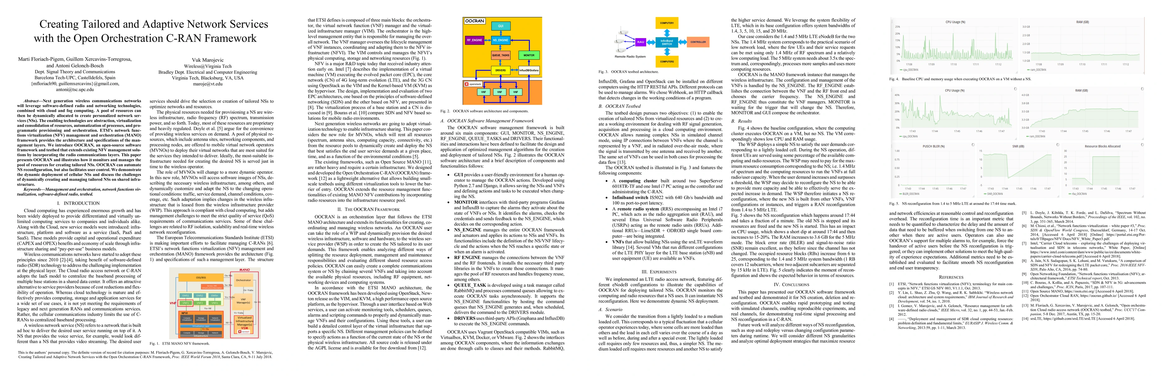 This paper introduces OOCRAN, an open-source framework extending NFV MANO to manage radio communications layers, enabling dynamic allocation and orchestration of resources for personalized network services. It highlights the challenges and benefits of creating adaptive network services on shared infrastructure.