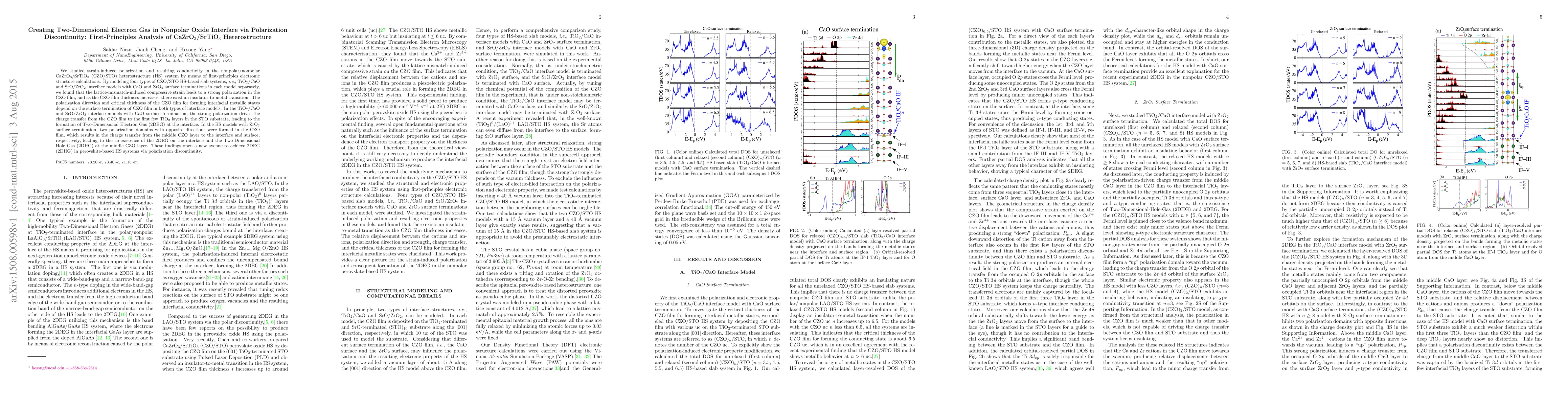 This paper investigates the strain-induced polarization and conductivity in CaZrO3/SrTiO3 heterostructures using first-principles calculations. It finds that compressive strain leads to an insulator-to-metal transition and the formation of a Two-Dimensional Electron Gas at the interface when the CaZrO3 film has a CaO surface termination.