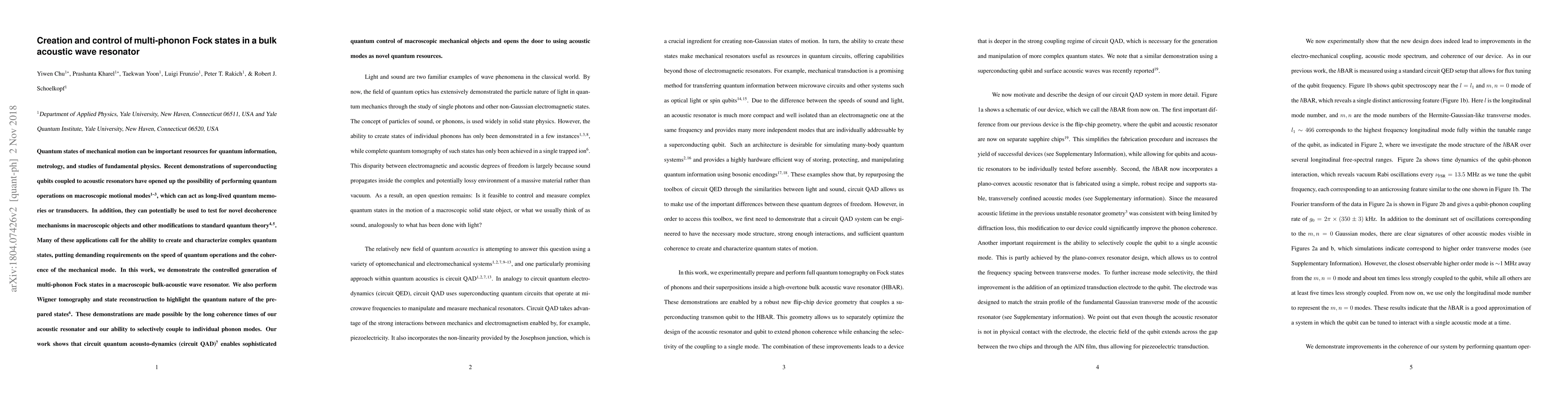 This paper demonstrates the controlled generation of multi-phonon Fock states in a bulk acoustic wave resonator using superconducting qubits, and employs Wigner tomography to confirm the quantum nature of these states, showcasing the potential of acoustic modes as quantum resources.