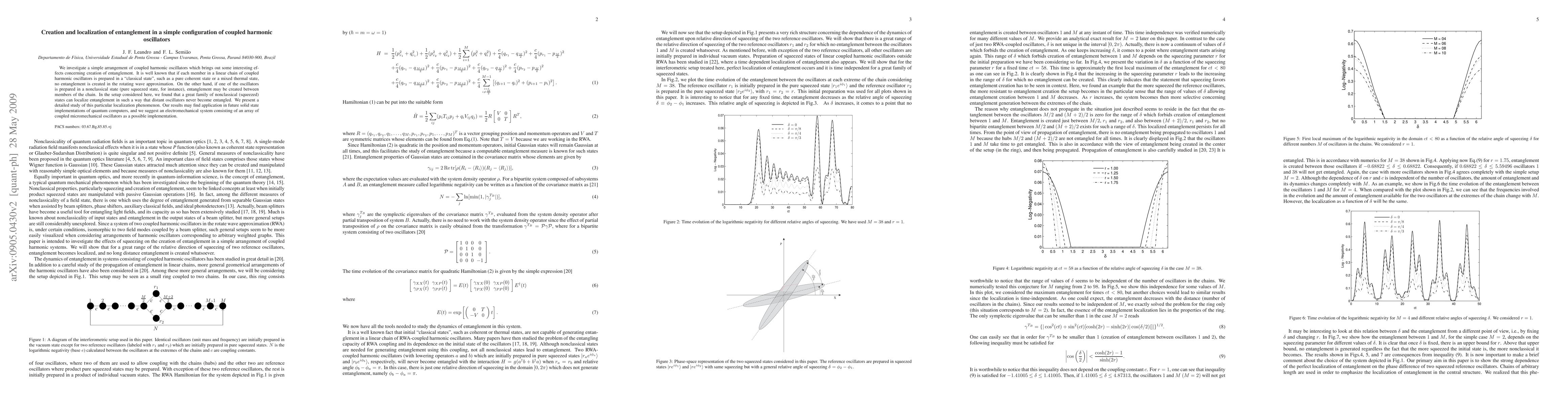 This paper explores the creation and localization of entanglement in coupled harmonic oscillators, revealing that nonclassical states like squeezed states can generate entanglement. Notably, certain squeezed states can localize entanglement, preventing distant oscillators from becoming entangled, which may have implications for solid-state quantum computing.