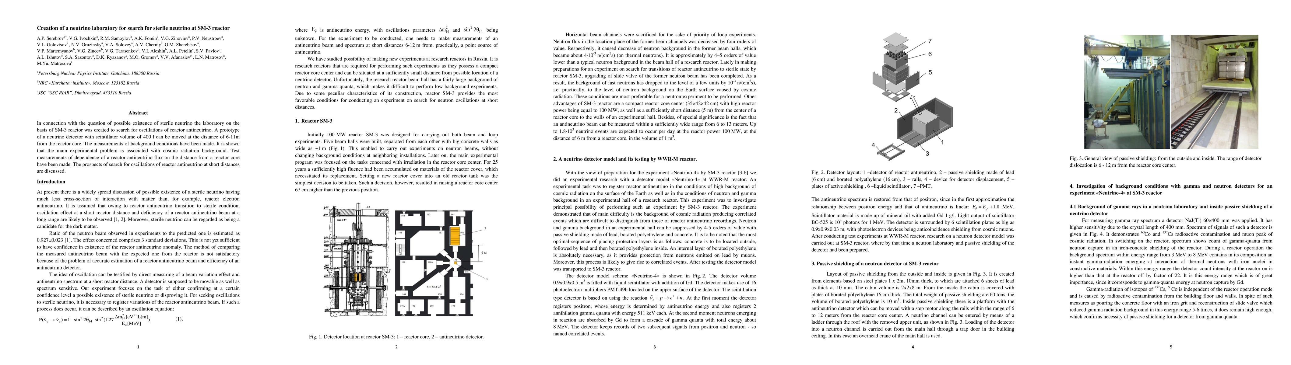 A neutrino laboratory was established near the SM-3 reactor to investigate sterile neutrino oscillations using a 400-liter scintillator detector. Measurements revealed cosmic radiation as the primary background issue. Initial tests confirmed a reactor antineutrino flux decrease with increasing distance from the reactor core, setting the stage for short-distance oscillation searches.