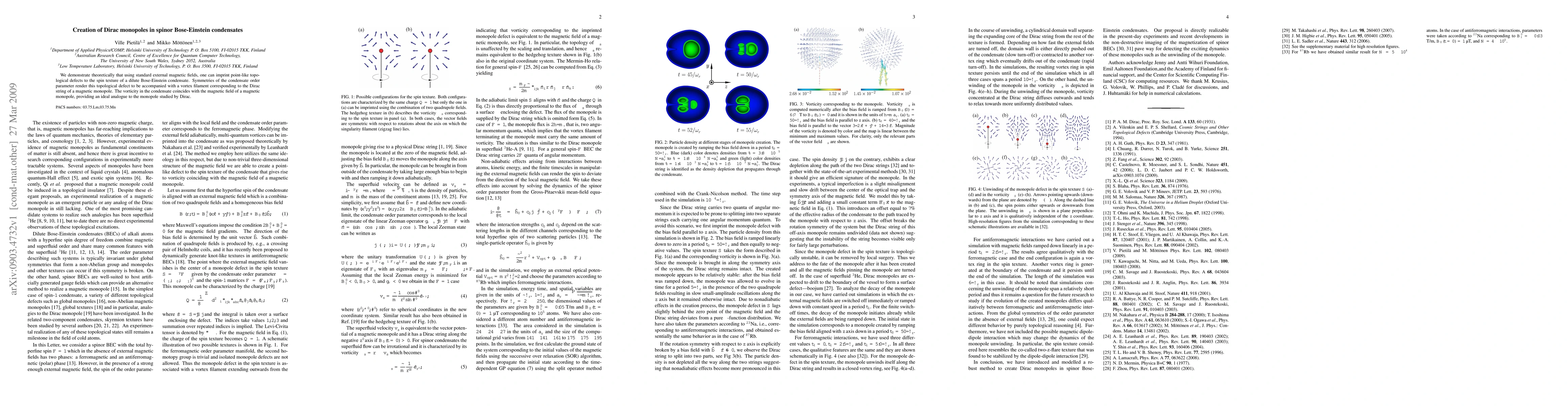We demonstrate theoretically that using standard external magnetic fields, one can imprint point-like topological defects to the spin texture of a dilute Bose-Einstein condensate. Symmetries of the condensate order parameter render this topological defect to be accompanied with a vortex filament corresponding to the Dirac string of a magnetic monopole. The vorticity in the condensate coincides with the magnetic field of a magnetic monopole, providing an ideal analogue to the monopole studied by Dirac.