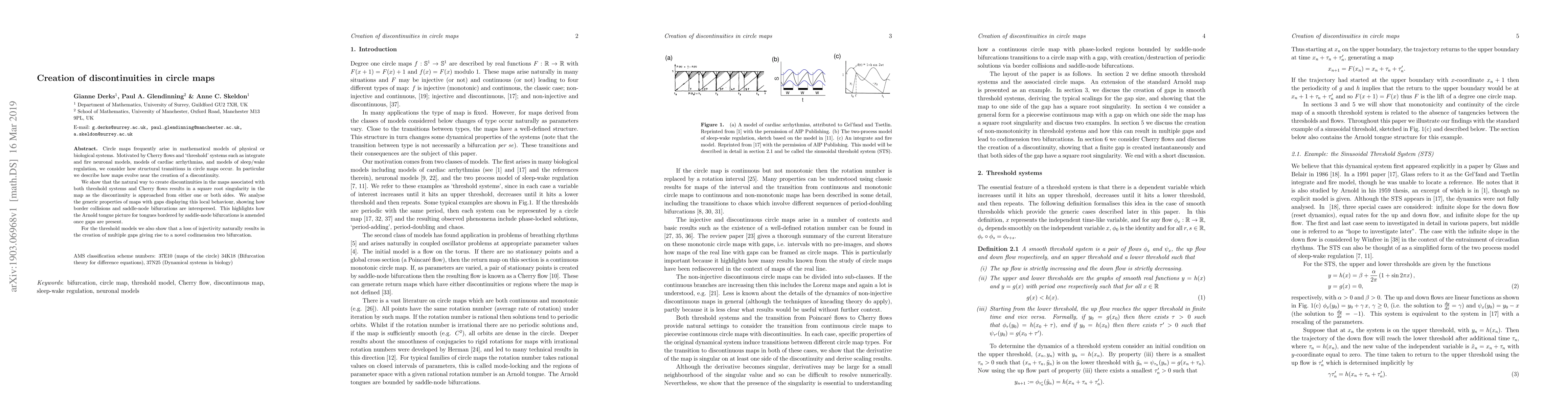 Researchers investigate how discontinuities form in circle maps used to model physical and biological systems, finding that they result in a specific type of singularity and novel codimension two bifurcation.