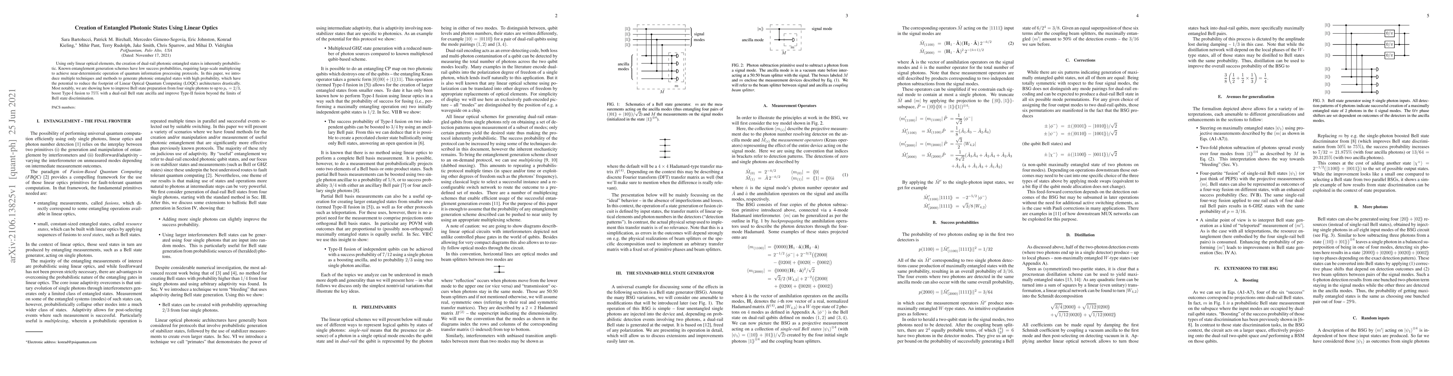 This paper presents innovative techniques to enhance the creation of dual-rail photonic entangled states using linear optics, significantly improving the success probability of Bell state preparation and fusion processes, which could greatly reduce the complexity of Linear Optical Quantum Computing architectures.