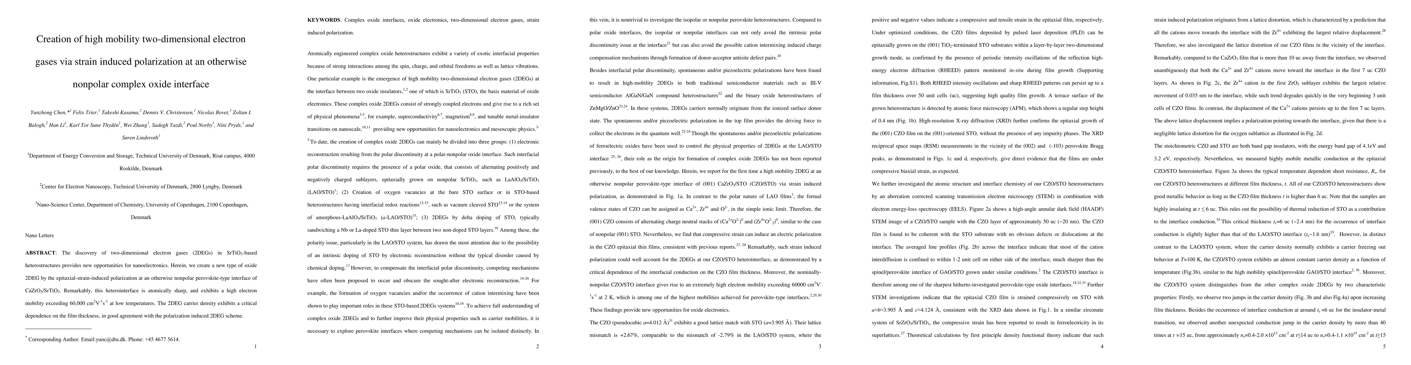 This paper reports the creation of high mobility two-dimensional electron gases (2DEGs) via strain-induced polarization at a nonpolar CaZrO3/SrTiO3 interface, leading to electron mobility exceeding 60,000 cm²V⁻¹s⁻¹ at low temperatures, with carrier density dependent on film thickness.