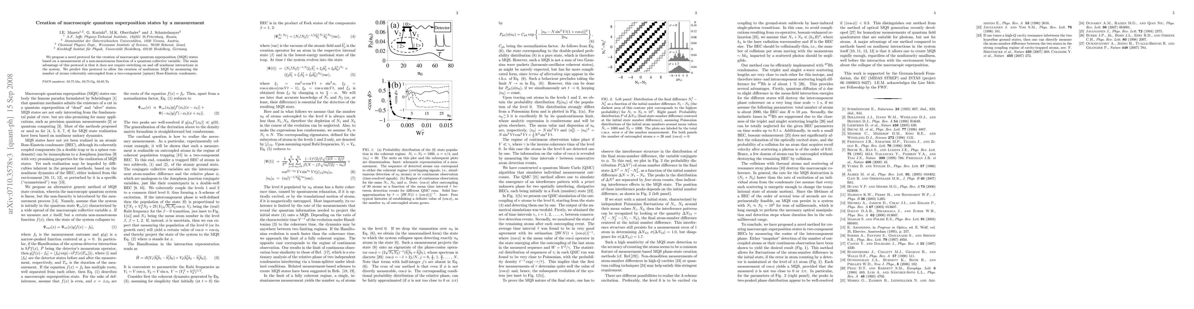 This paper proposes a new protocol for generating macroscopic quantum superposition states without needing to toggle nonlinear interactions, by measuring a non-monotonous function of a quantum collective variable. The method is predicted to enable the creation of multiatom superposition states by counting atoms coherently outcoupled from a spin-polarized Bose-Einstein condensate.