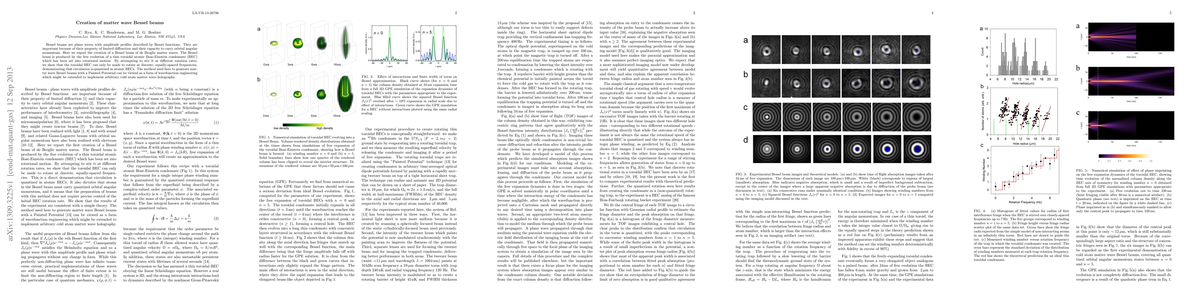 This paper reports the creation of de Broglie matter wave Bessel beams via the rotational motion of a toroidal atomic Bose-Einstein condensate, demonstrating quantized circulation and suggesting a novel method of wavefunction engineering for cold atom holography.