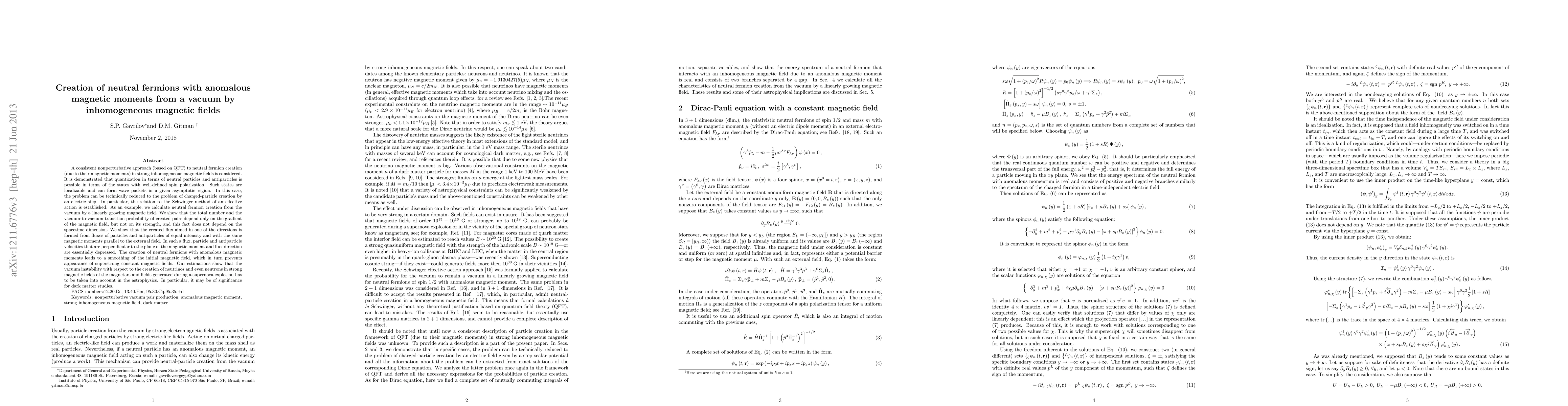 This paper presents a nonperturbative quantum field theory approach to the creation of neutral fermions with anomalous magnetic moments from a vacuum under strong inhomogeneous magnetic fields. It demonstrates that the creation process depends on the magnetic field gradient rather than its strength, and highlights its implications for astrophysical phenomena like magnetars and supernova explosions, potentially influencing dark matter studies.