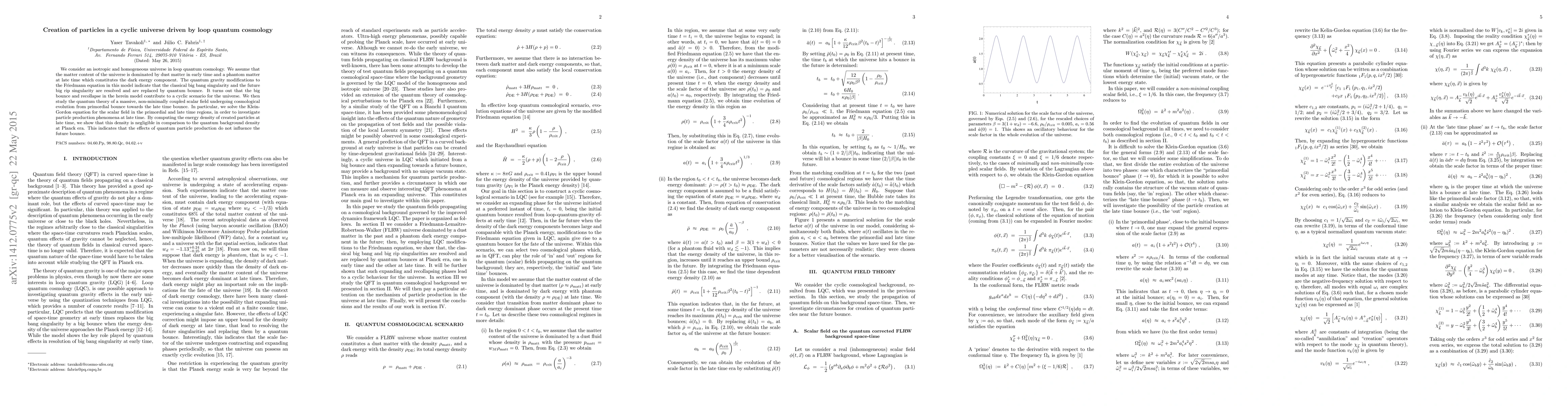 This paper proposes a cyclic universe model driven by loop quantum cosmology, resolving classical singularities with quantum bounces. Particle production is found to have negligible effects on the future bounce.