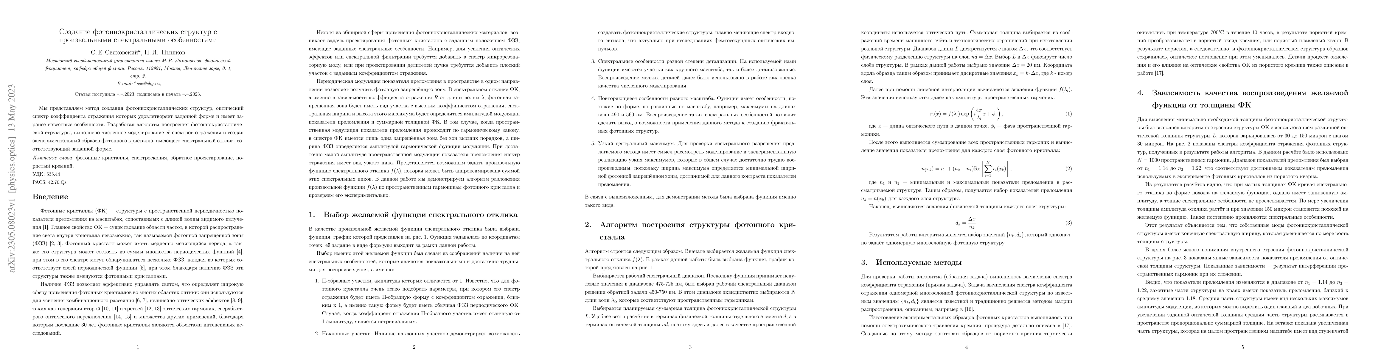 This paper introduces a method for designing photonic crystal structures with customizable spectral features, utilizing an algorithm to construct the structure, followed by numerical simulations and experimental validation to achieve the desired reflection spectrum.