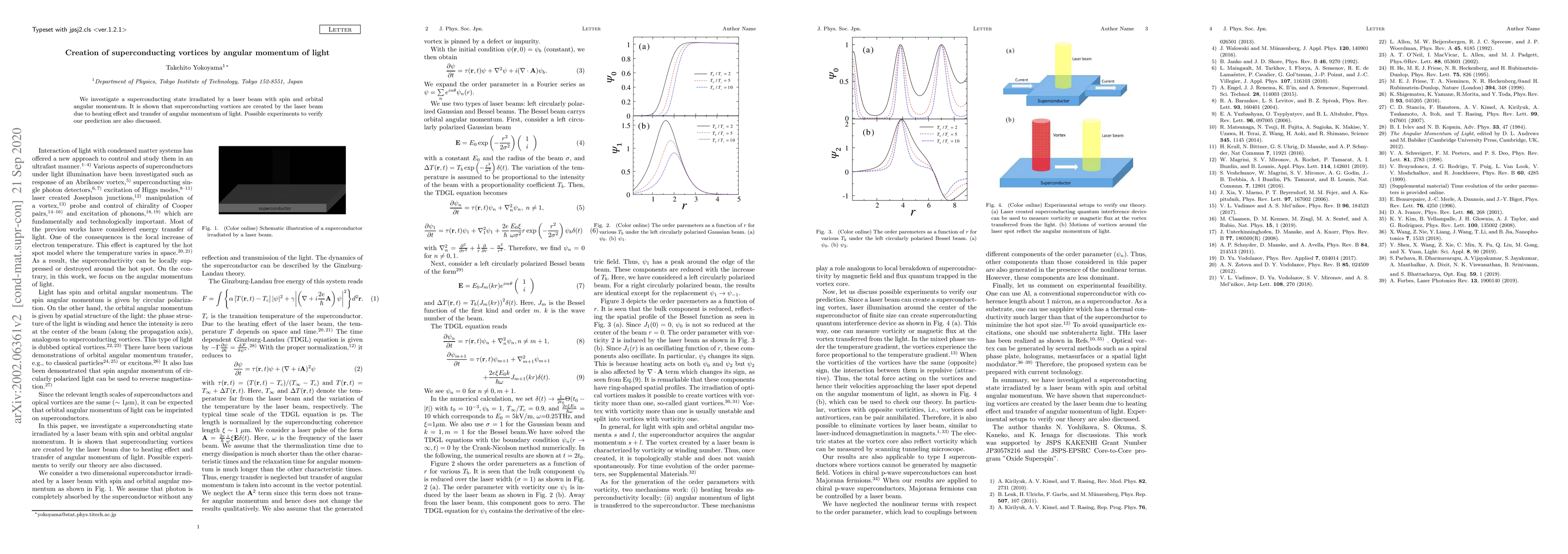 Summary: This study explores the creation of superconducting vortices via a laser beam with spin and orbital angular momentum, demonstrating that these vortices form due to both heating effects and the transfer of angular momentum from the light, with proposed experiments to validate these findings.