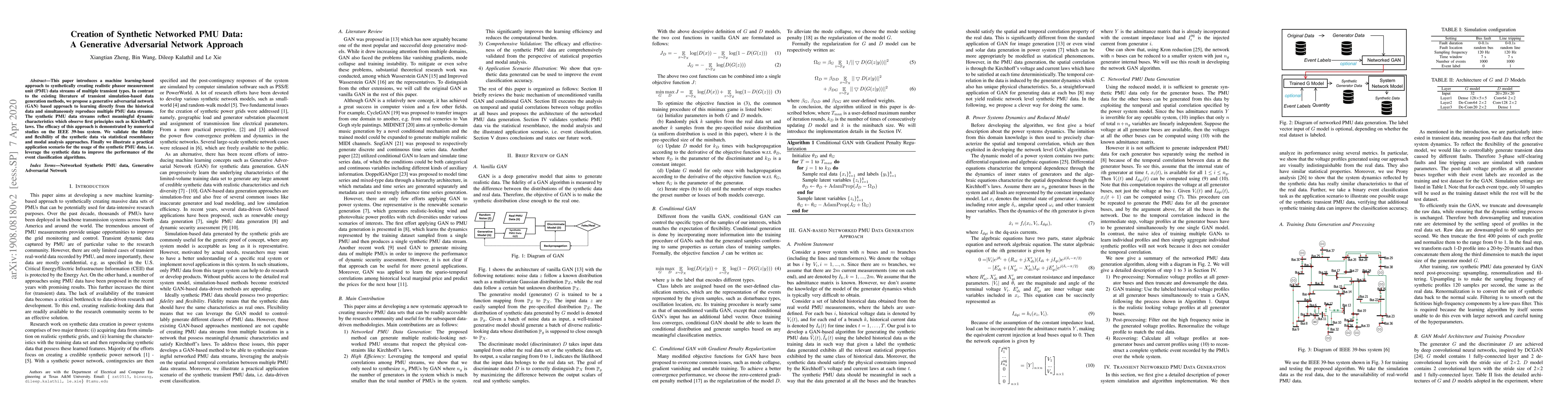 This paper proposes a generative adversarial network (GAN) approach to synthetically generate realistic phasor measurement unit (PMU) data streams, demonstrating the method's efficacy on the IEEE 39-bus system and validating the data's fidelity and flexibility for improving event classification algorithms.