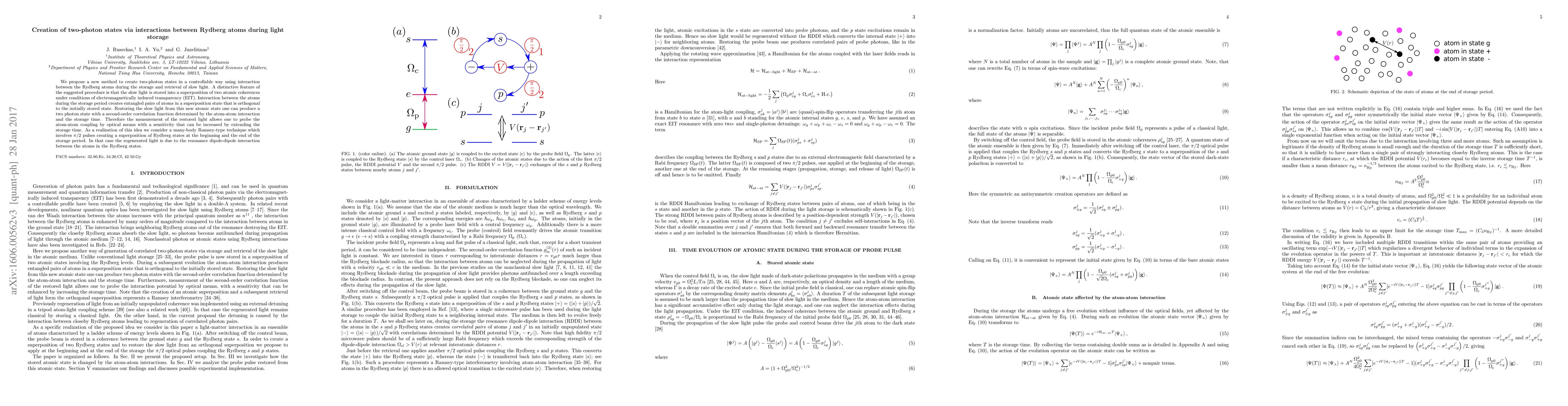 Researchers propose a method to create two-photon states using interactions between Rydberg atoms during light storage, enabling the measurement of atom-atom coupling with increased sensitivity.