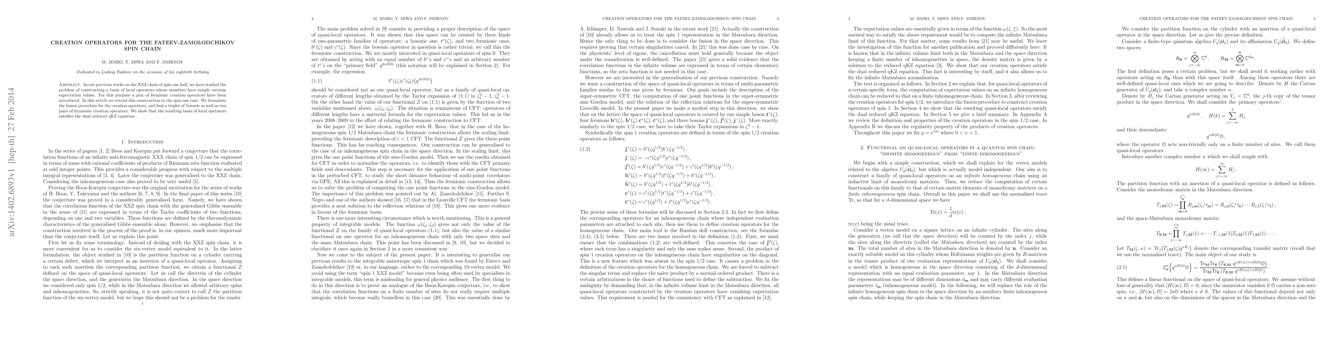 The paper introduces a fusion procedure for creation operators and identifies new sets of bosonic and fermionic creation operators for the spin one case, ensuring they satisfy the dual reduced qKZ equation.