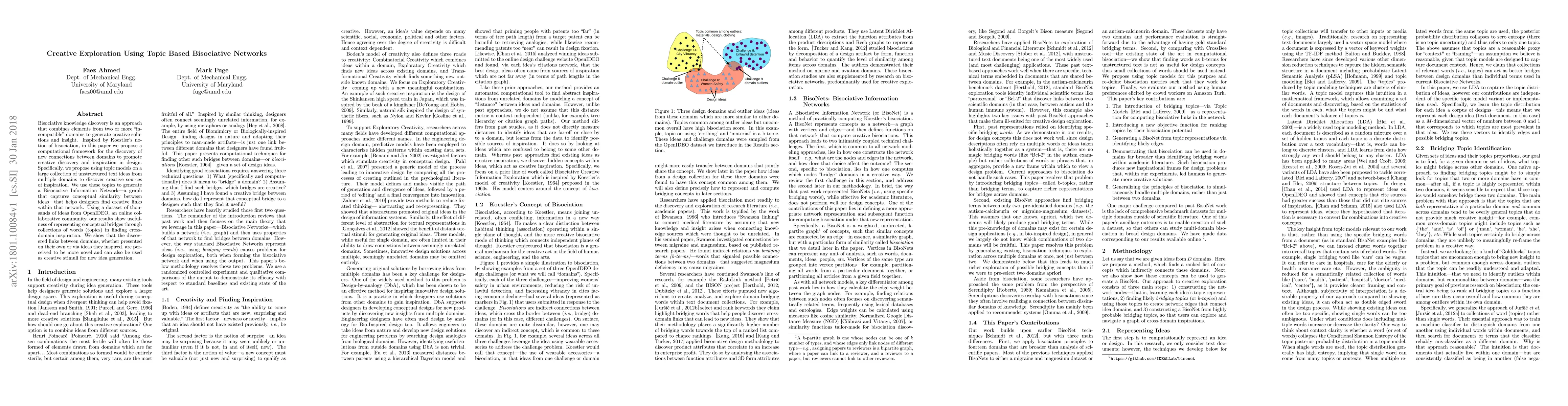 Bisociative knowledge discovery is an approach that combines elements from two or more "incompatible" domains to generate creative solutions and insight. Inspired by Koestler's notion of bisociation, in this paper we propose a computational framework for the discovery of new connections between domains to promote creative discovery and inspiration in design. Specifically, we propose using topic models on a large collection of unstructured text ideas from multiple domains to discover creative sources of inspiration. We use these topics to generate a Bisociative Information Network--- a graph that captures conceptual similarity between ideas--- that helps designers find creative links within that network. Using a dataset of thousands of ideas from OpenIDEO, an online collaborative community, our results show usefulness of representing conceptual bridges through collections of words (topics) in finding cross-domain inspiration. We show that the discovered links between domains, whether presented on their own or via ideas they inspired, are perceived to be more novel and can also be used as creative stimuli for new idea generation.
