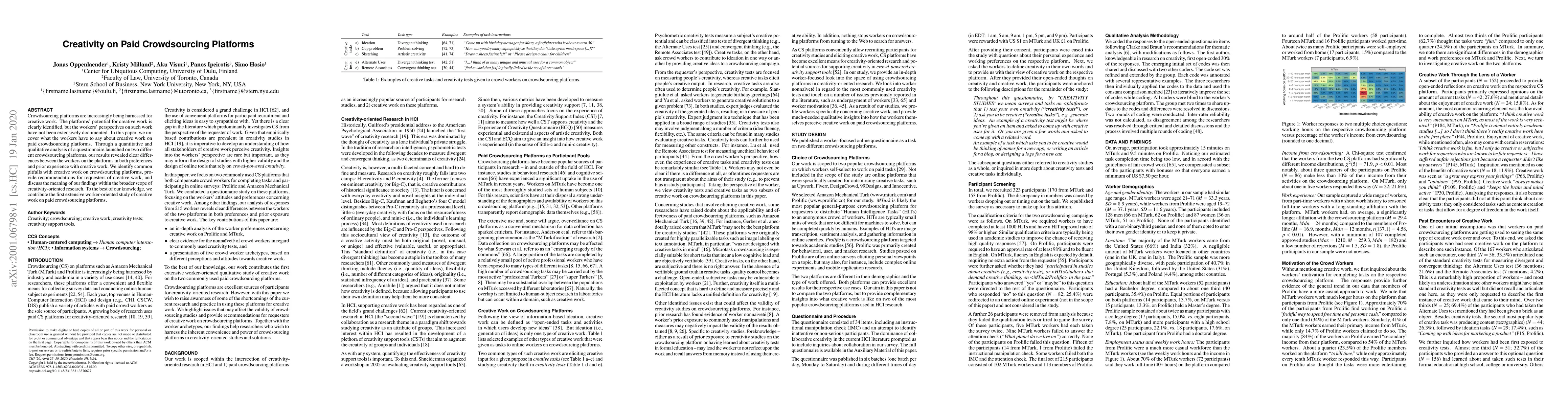This study investigates workers' perspectives on creative tasks on paid crowdsourcing platforms, revealing significant differences in preferences and experience. It identifies common challenges and offers recommendations for requesters, contributing the first extensive worker-oriented analysis in this domain.