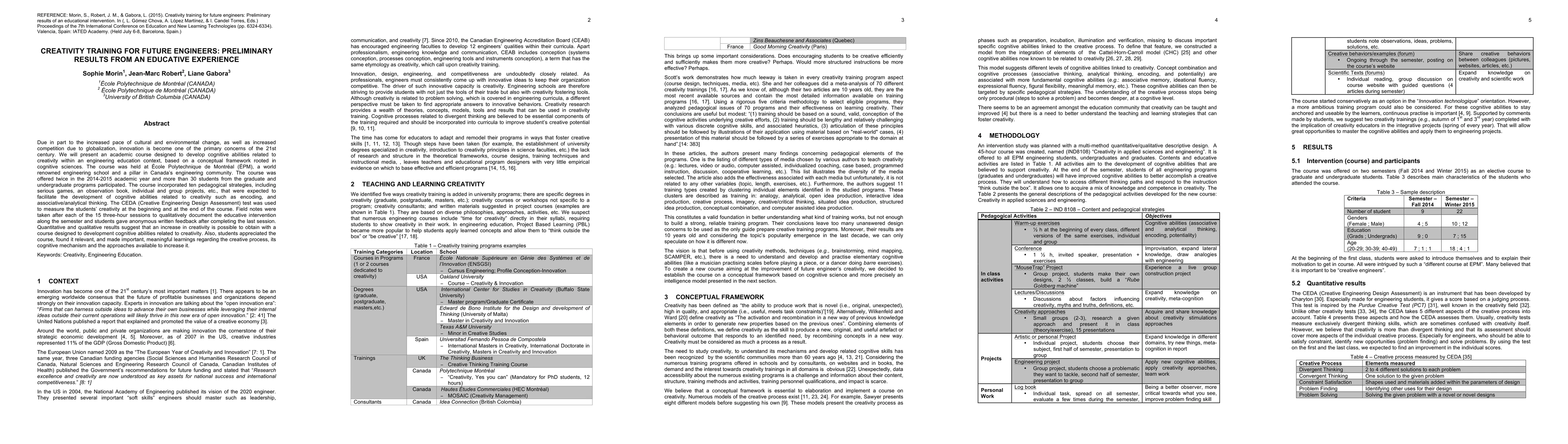 A university course successfully improved students' creativity skills through a 15-session program incorporating pedagogical strategies like serious games and group projects. Students showed increased creativity and appreciation for the course's content, suggesting its effectiveness in developing cognitive abilities related to innovation.